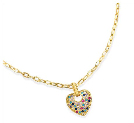 This stunning cubic zirconia heart necklace features a delicate paperclip chain and a vibrant multicolor cubic zirconia heart pendant. With its eye-catching design and high-quality materials, this necklace will make a statement with its unique style.