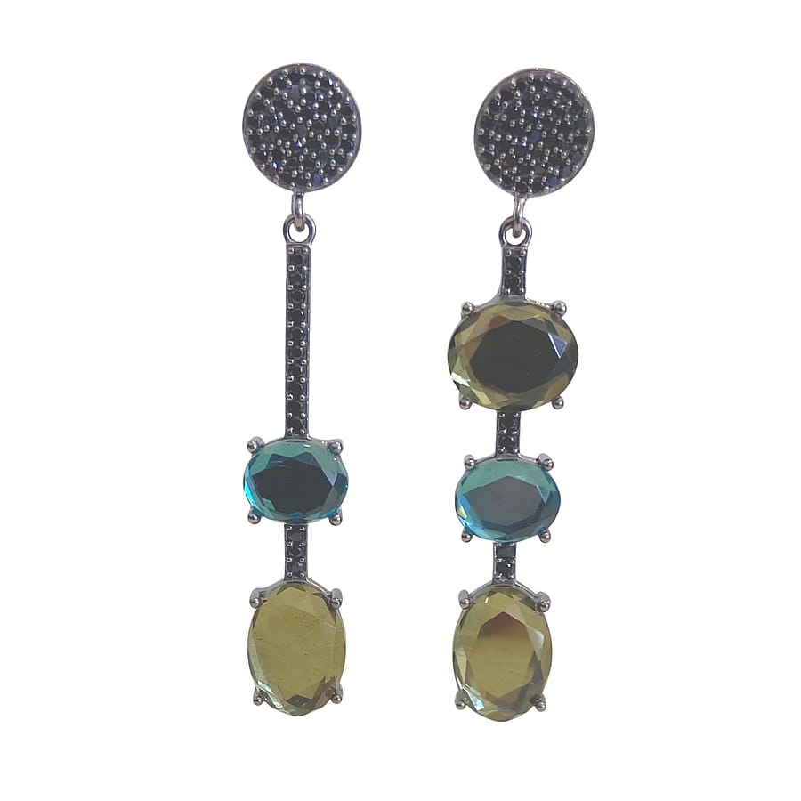 Mismatched by Design -Wit and Whimsy- Smoky Blues mix/Neutral w Black CZs