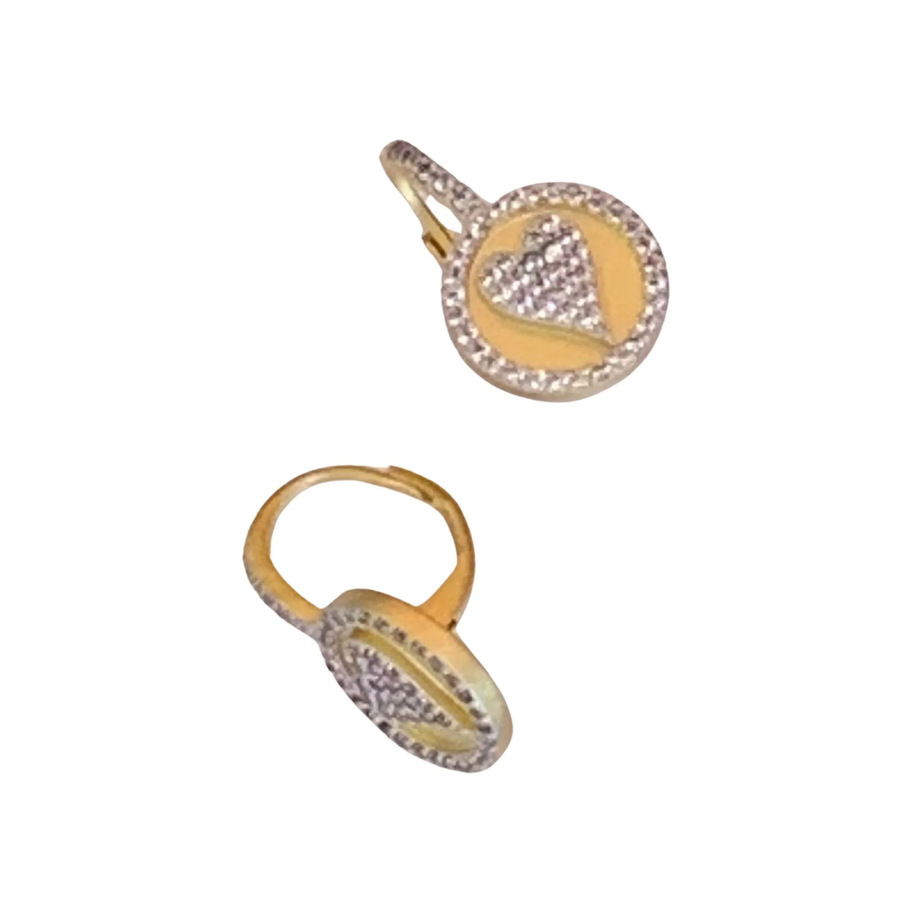 A lovely addition to our Little Black Dress Approved Collection; these matte gold earrings feature a pave cz heart motif, 18kt matte plate and pave encrusted hinge ear wires.