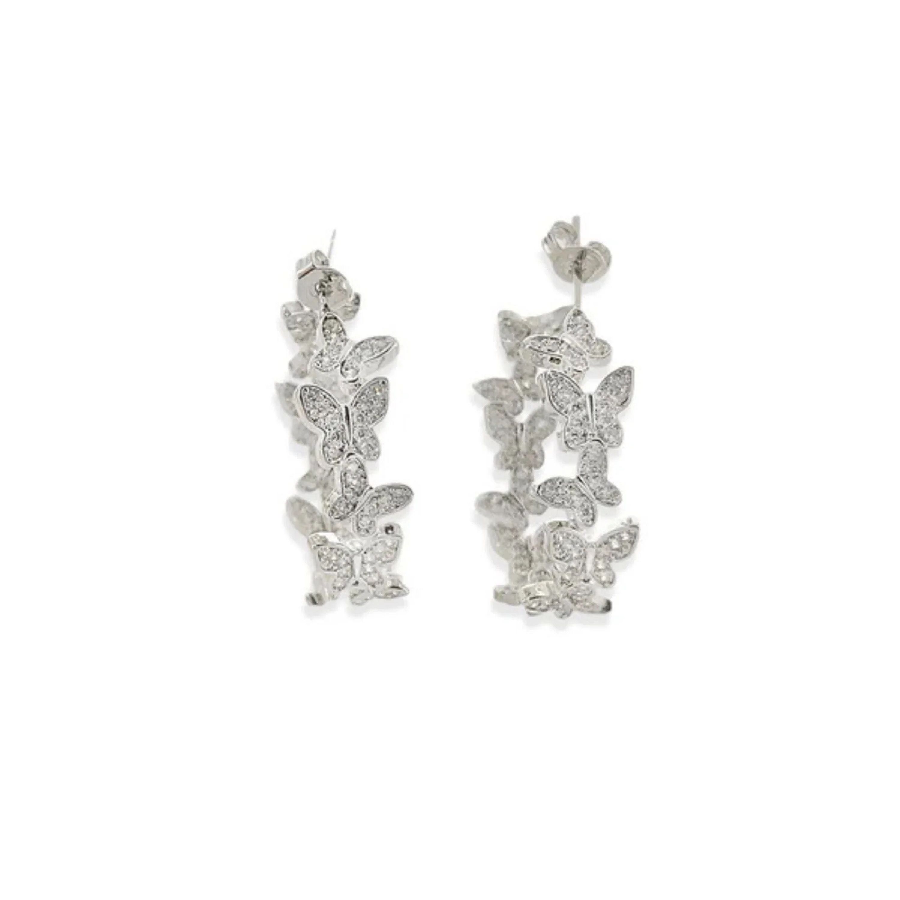 Cubic zirconia butterfly earrings with cubic zirconia embedded in half the hoop - cubic zirconia on the front/outside of hoop and the back inside.