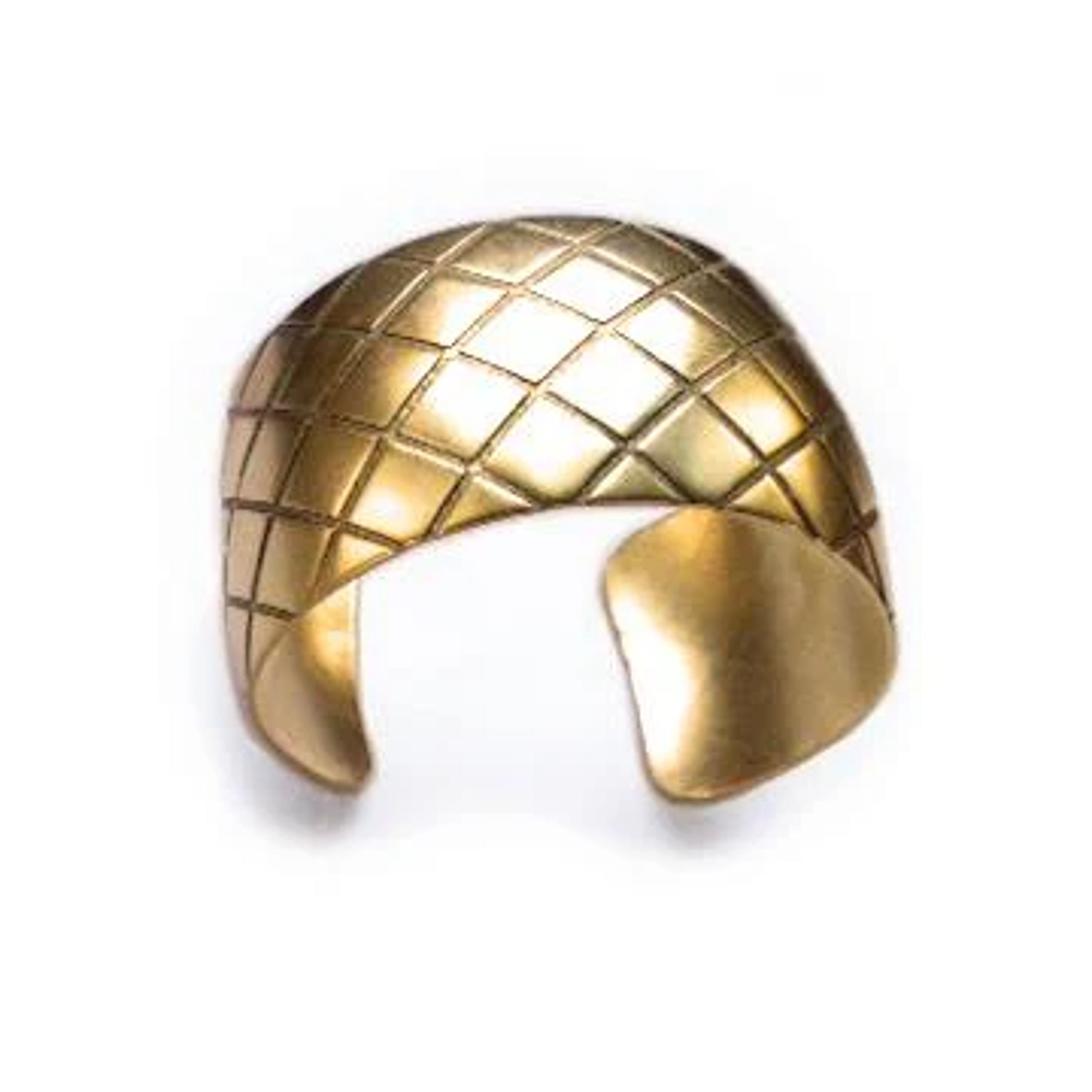 Checkered quilt pattern cuff 2.5 inch. Gold plated, oxidized finish. Available also in oxidized Silver finish. A featured cuff in Harper's Bazaar. Hand made with love in NYC.
