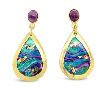 A team of skilled artisans design and individually craft each piece, wrapping them in 22K gold leaf. Using an intricate process, the jewelry is gilded and burnished by hand and is fabricated over a period of five days, resulting in an exquisite work of art, each piece finished to a rich patina.