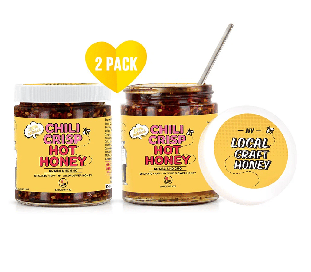 Experience sweet and spicy flavor with Chili Crisp Hot Honey 2PK! Our unique blend of sweet honey and spicy chili peppers are a flavorful combination that will delight your taste buds. The two pack offers double the yumminess. Try it on everything from cheese to pizza and more!