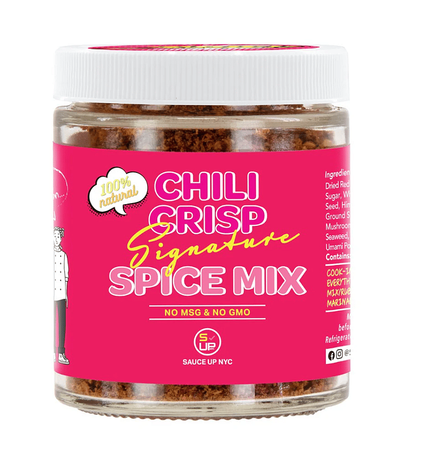 Chili Crisp Signature Spice Mix is a special blend of spices and ingredients, designed to enhance the flavor of your favorite dishes. This mix features a combination of chili pepper, garlic, ginger, sesame seeds, and other unique spices to add a savory tang to dishes. Flavorful and fragrant, it's the perfect way to add a little kick to your food.