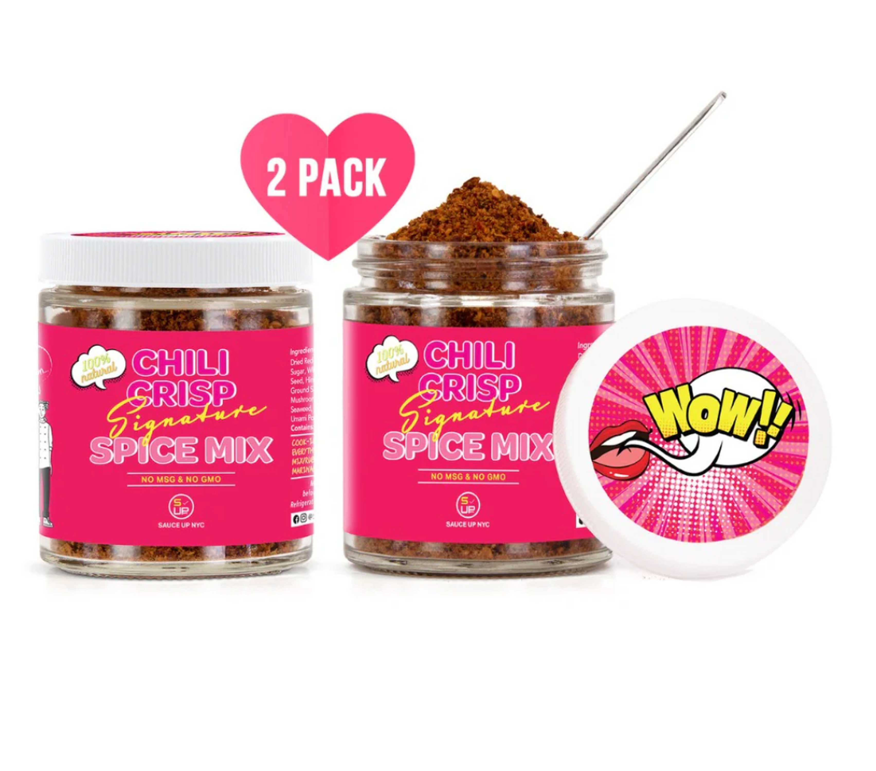 This 2PK of Chili Crisp's Signature Spice Mix is perfect for spicing up your favorite dishes. Made with a blend of chili peppers and herbs, this mix enhances any meal with a flavor punch. All-natural, vegan, and MSG-free, this mix will add a touch of spice to any dish.