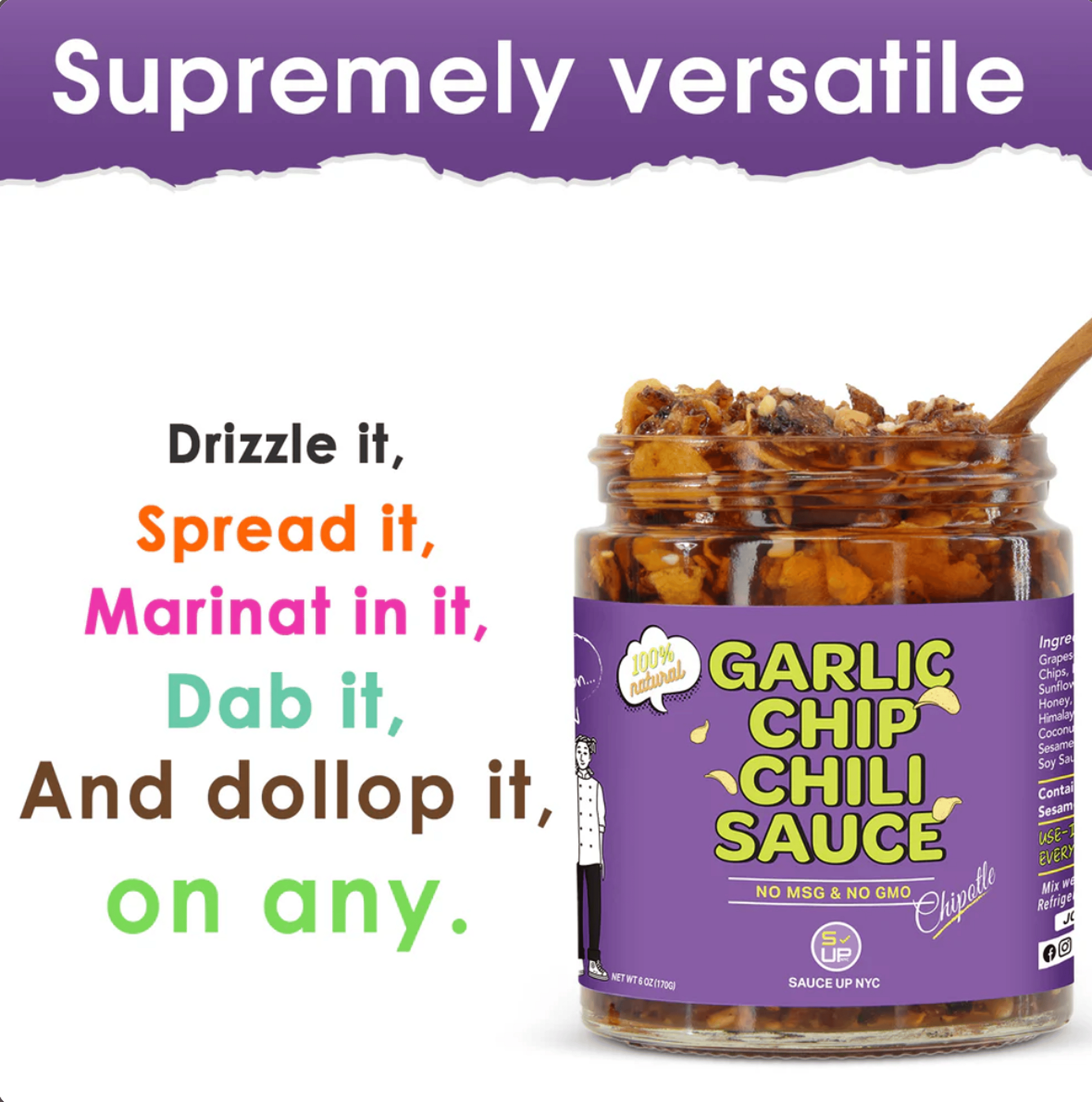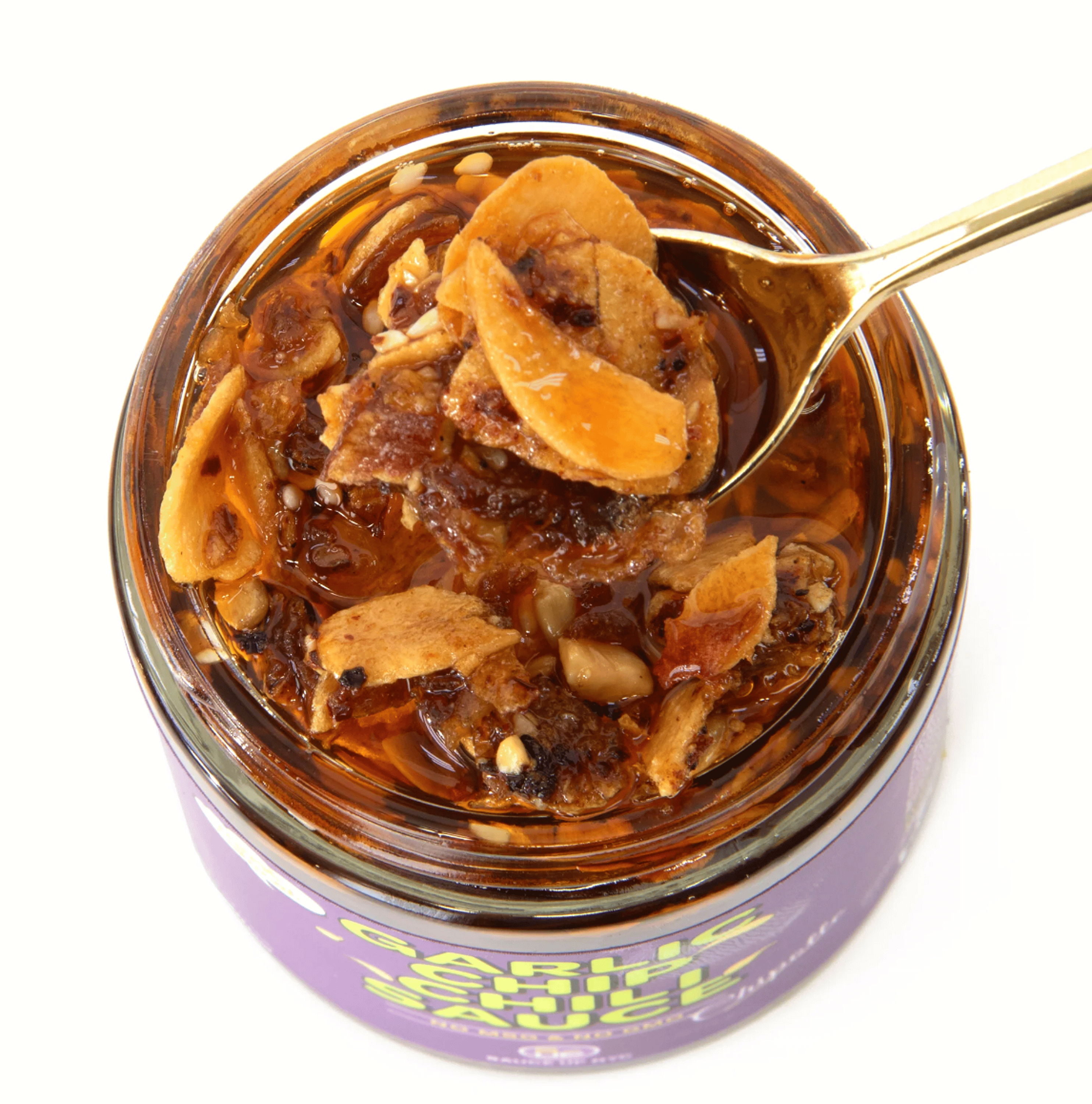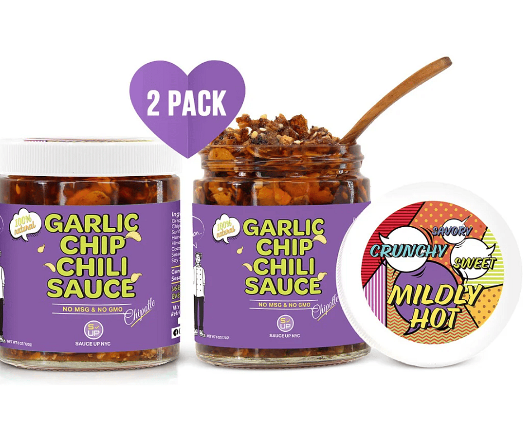 This garlic chip chili sauce set offers of bold, savory super crunchy and mildly spicy flavors. Crafted with 13+ premium ingredients, each bottle will enhance your favorite dishes with its warm and tantalizing flavor. Enjoy the rich, complex blend of chipotle, garlic and spices that will leave your taste buds satisfied.