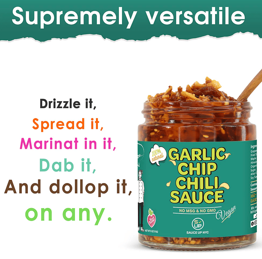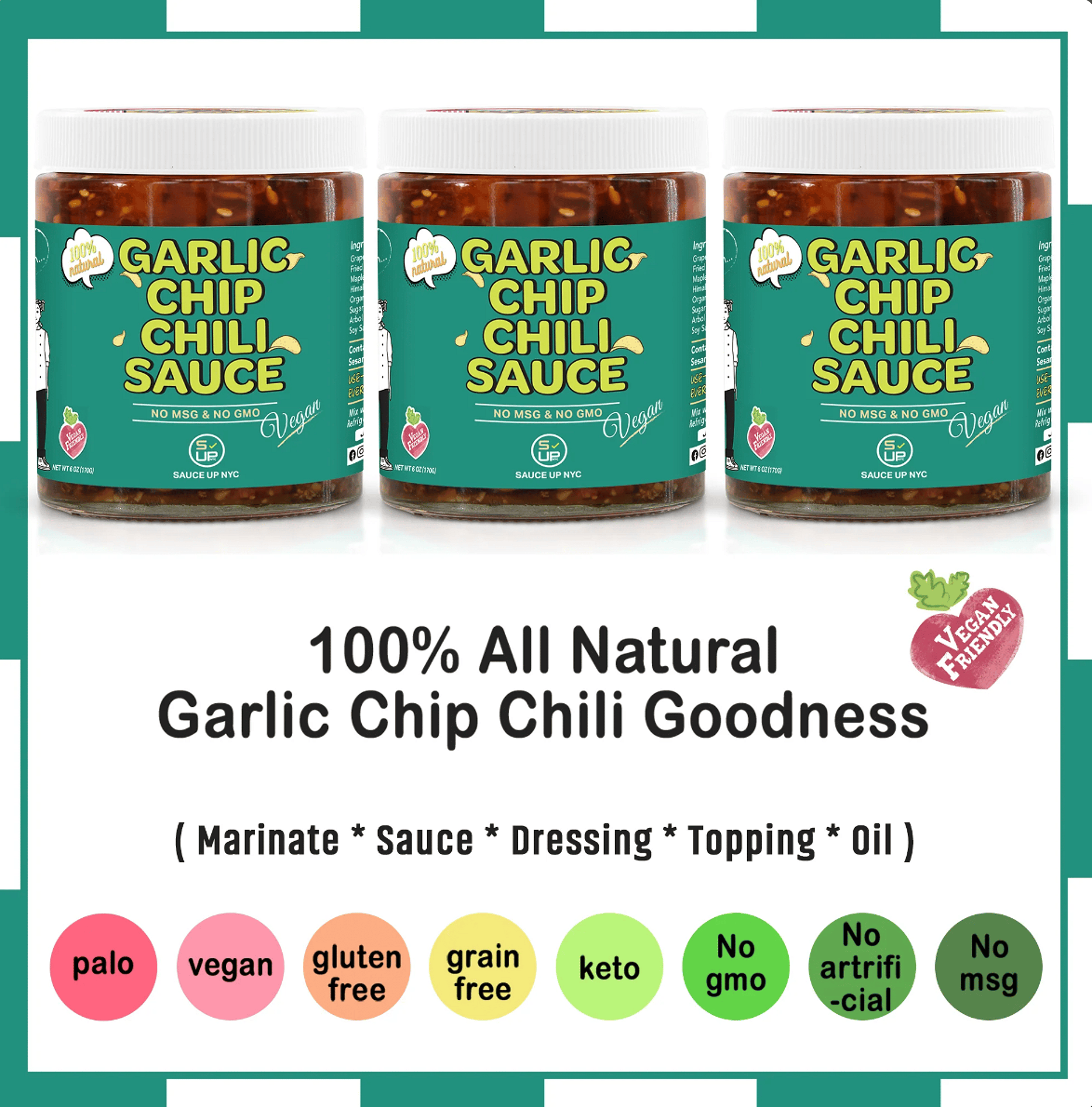 Introducing our latest creation for vegan fans: the one and only 100% natural, restaurant-grade, mouthwatering garlic chip chili sauce topping with maple syrup! Get ready for a culinary adventure unlike any other, with savory aromas, extra layers of flavors, and delightful textures. From the savory bite to the satisfying crunch of real garlic and shallot chips, every moment with our sauce promises to redefine your palate of deliciousness!