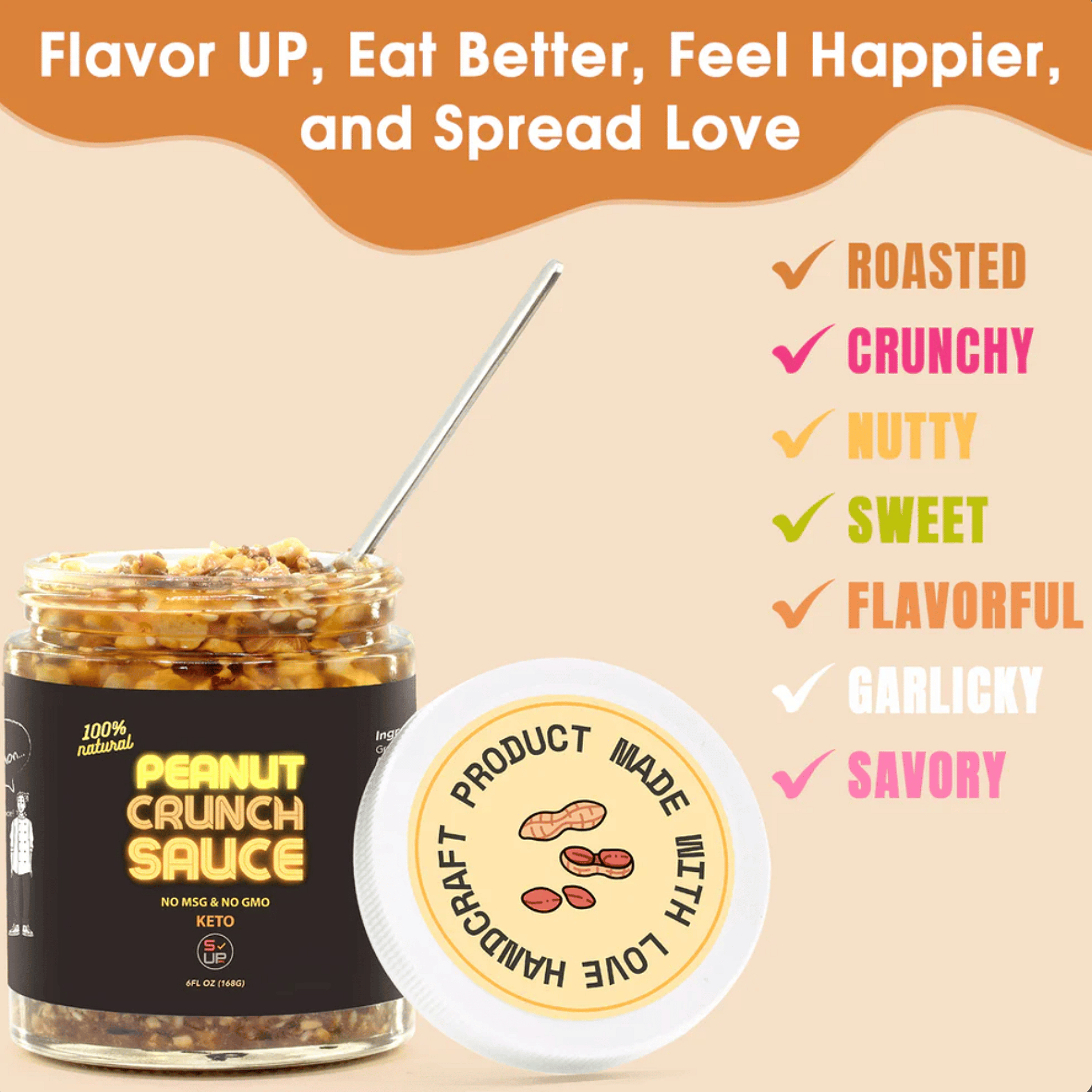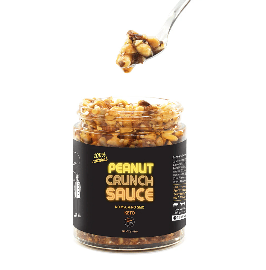 Bringing to life an richly textured, nut-sensational sauce bursting with savoriness, our NUT CRUNCH SAUCES are a kitchen no-brainer. This flavor extraordinaire marries together roasted chunky nuts, crispy fried garlic & fried onions, toasted sesame seeds, and a chef-blend of herbs & spices in high grade grapeseed oil. Coming in a roasted peanut version, roasted almond, or—if you must have all including roasted sunflower seeds—a combo of the three plus pure luscious white truffle, these sauces are 100% natural, 200% delicious on anything, and 1000% love-song-inducingly, supremely delicious & versatile.