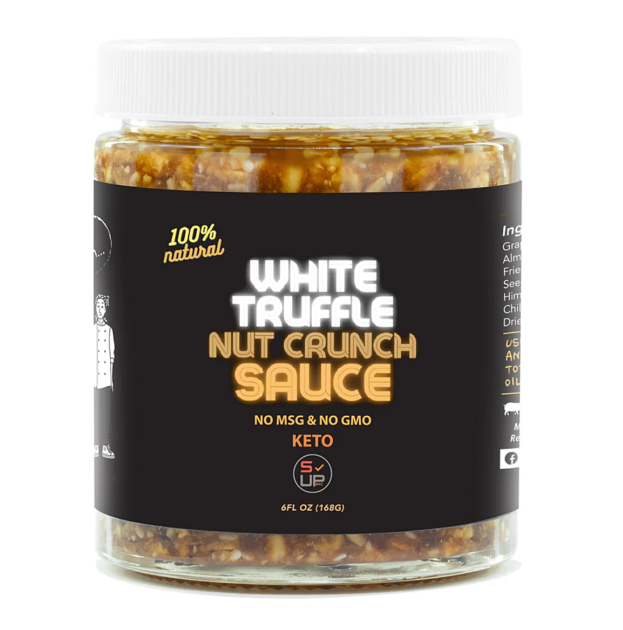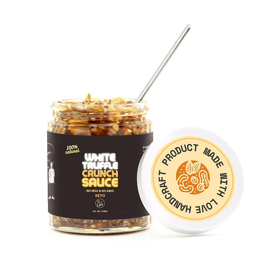 This flavor extraordinaire marries together roasted chunky nuts, crispy fried garlic & fried onions, toasted sesame seeds, and a chef-blend of herbs & spices in high grade grapeseed oil.