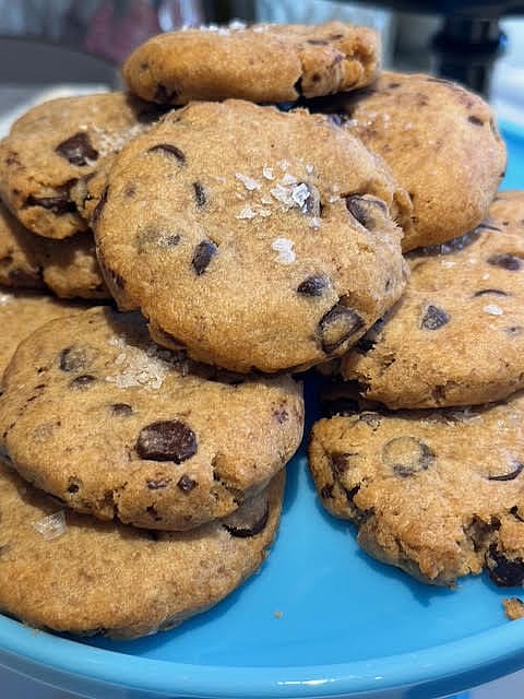 Dairy-free and gluten free cookie dough studded with chocolate chips finished with a sprinkle of sea salt.