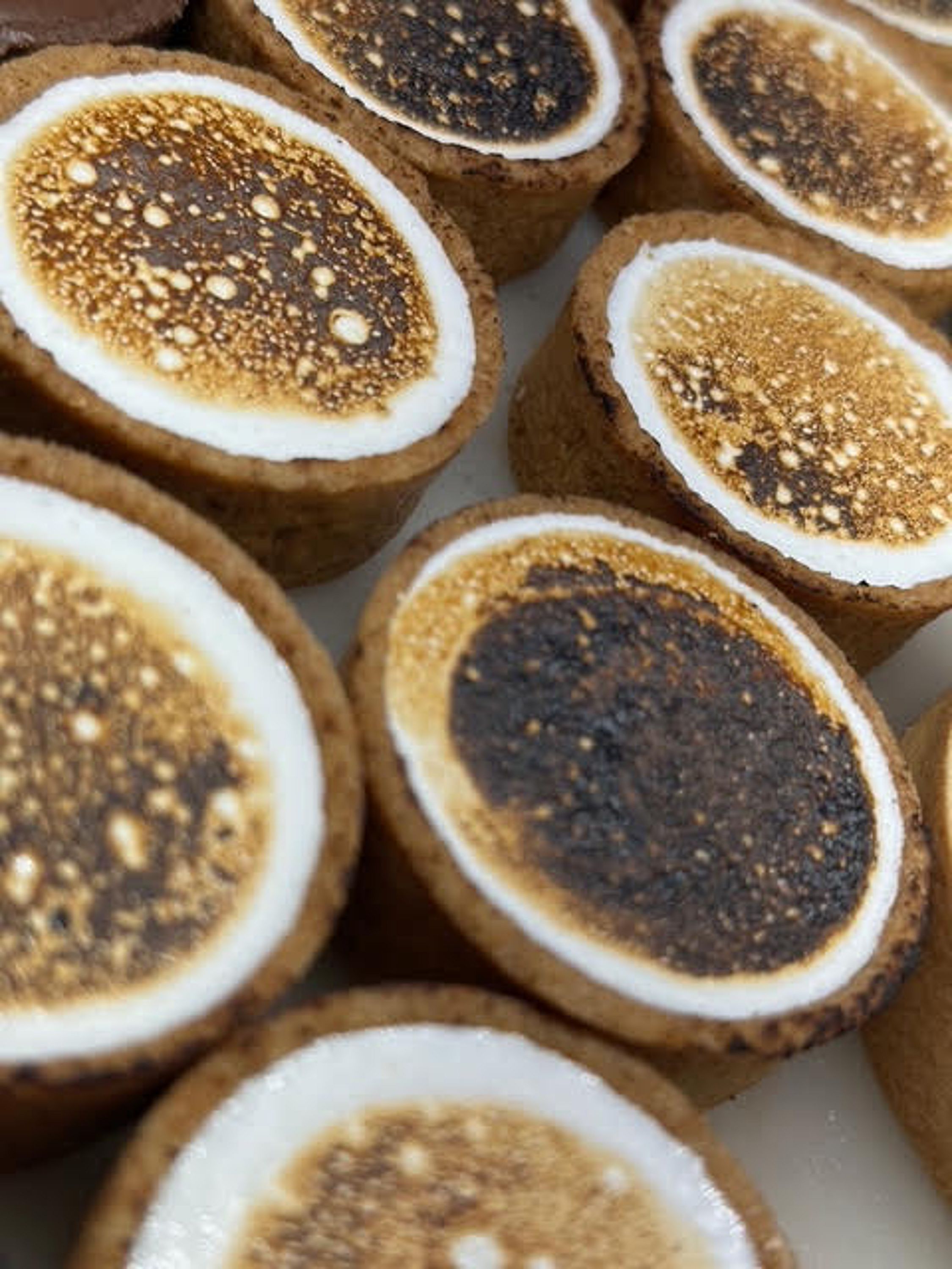 Graham cracker shell filled with chocolate and topped with toasted marshmallow.