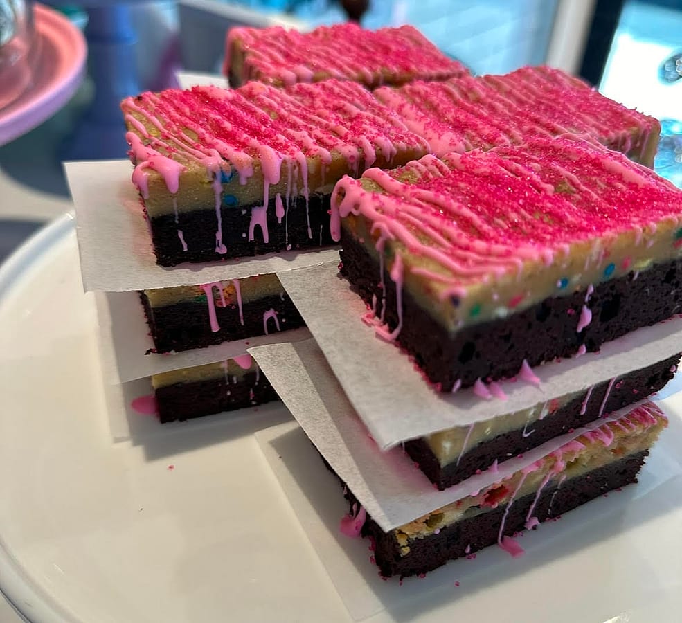 Brownie topped with a sprinkle, cookie blonde topped with sprinkles.