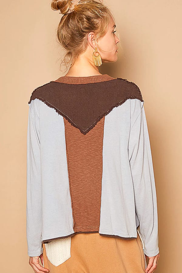 Unleash your unique style with our versatile Color Block Mixed Media Top! Perfectly designed with a notched neckline and long sleeves for a flattering fit. The relaxed fit and color blocked contrast fabrications add a touch of casual-chic to any outfit. Get ready to turn heads with this woven and knit top!