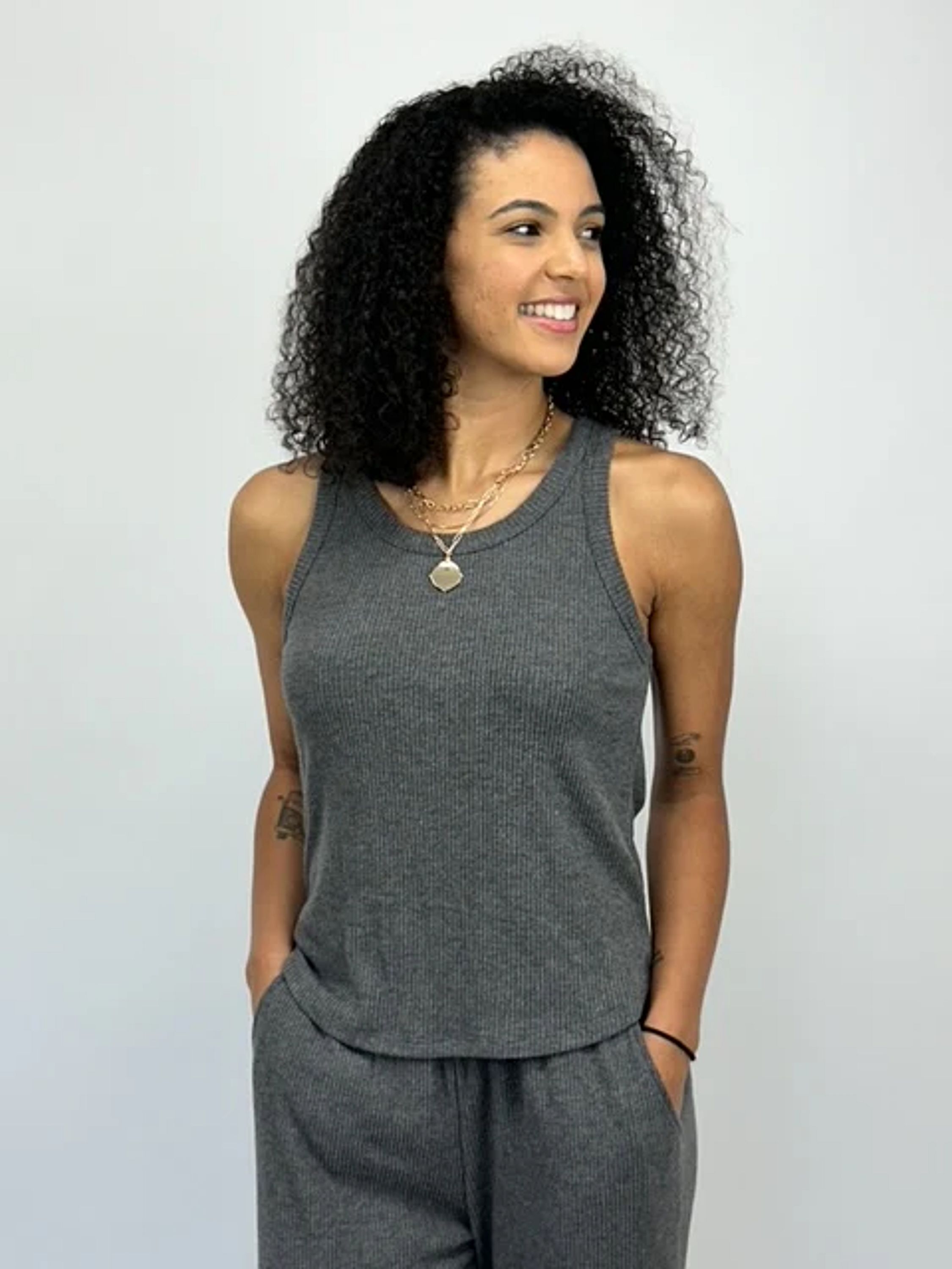 Indulge in the luxurious comfort of our Cashmere Rib Tank. Designed to be both soft and loose-fitting, this tank is perfect for any occasion. Trust us, it runs true to size and will become your new favorite wardrobe essential!