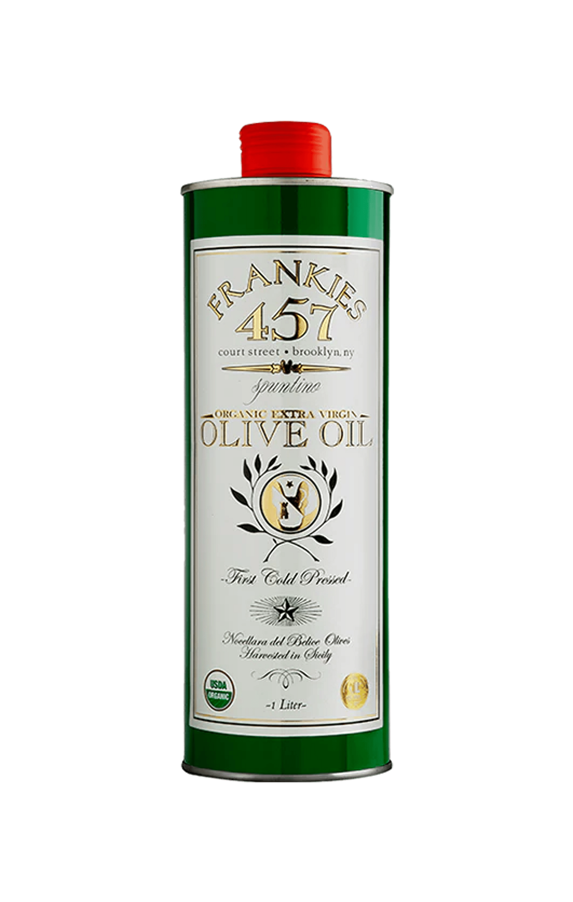 The one that made us famous, the Greatest Olive Oil in the World. Fruity, nutty, deep, and bright, Frankies Organic Extra Virgin is a fully organic olive oil made with Nocellara del Belice olives grown and harvested in Selinunte, Sicily. We like to keep this one on the dining-room table. You should drizzle it on meat and vegetables and use it in soups and salads. Hell, you can even spoon it over a beautiful scoop of vanilla gelato.