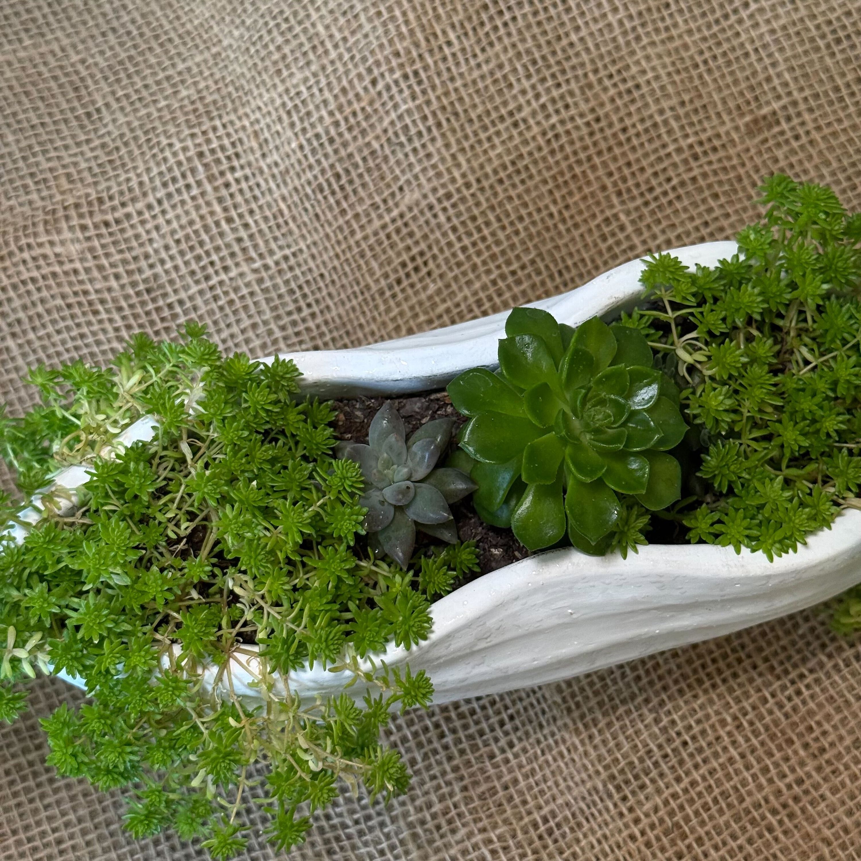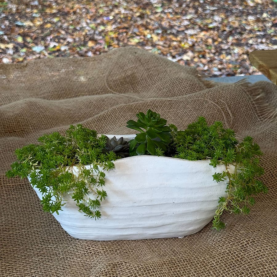 This large succulent plant features thick, fleshy leaves arranged in a rosette pattern. Its leaves are often edged with subtle hues of red or purple, and it thrives in bright sunlight, storing water in its plump foliage. A bold and low-maintenance statement piece, it's perfect for adding a touch of desert charm to any space.