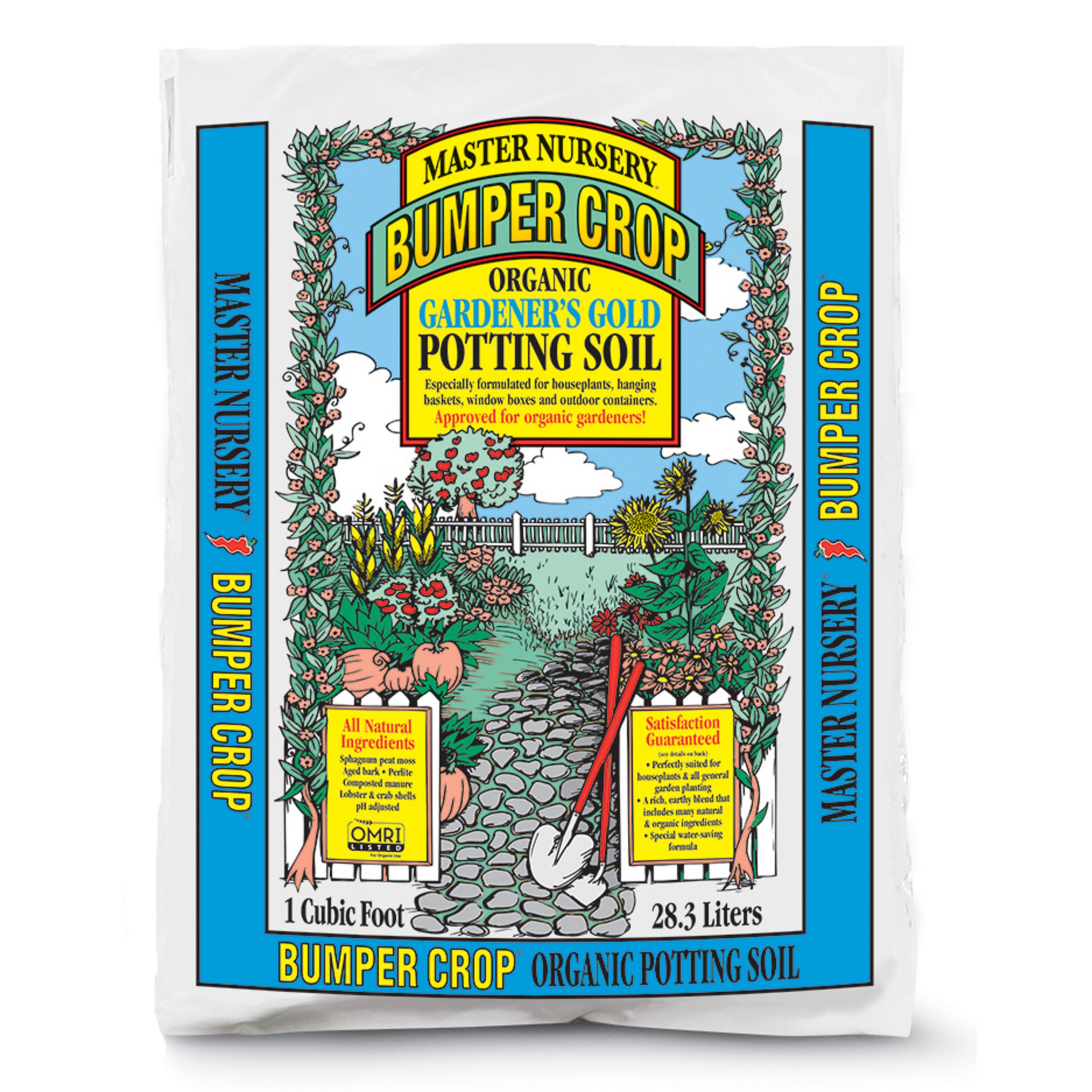 Achieve eco-friendly gardening with Master Nursery® Bumper Crop® Organic Potting Soil, a product with OMRI certification, ideal for every outdoor and indoor potted plant. This meticulously prepared mixture comprises aged wood fiber, matured bark, sphagnum peat moss, treated compost, perlite, kelp meal, dried hen manure, and lobster meal. The rich, living compost not only maintains moisture effectively but also enriches the soil with beneficial microorganisms, reducing the need for water and fertilizer. Trust this biologically rich and versatile growth medium to boost the health and growth of your indoor houseplants and outdoor potted plants. OMRI Listed for organic use. pH range 6.2.