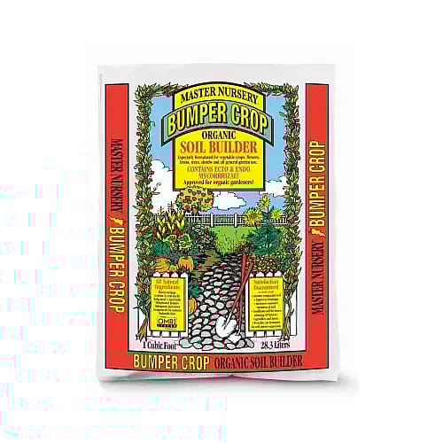 Master Nursery, Bumper Crop, 2 CUFT, Organic Soil Builder, Super Premium, All Purpose Soil Amendment For Flower & Vegetable Beds & Planting Trees & Shrubs, Made With Composted Cow Manure, Sphagnum Peat, Aged Bark, Worm Castings, Lobster & Crab Shells, Kelp Meal, Dehydrated Poultry Manure & Both Endo & Ecto Mycorrhizae, Approved For Organic Gardeners, Bag.