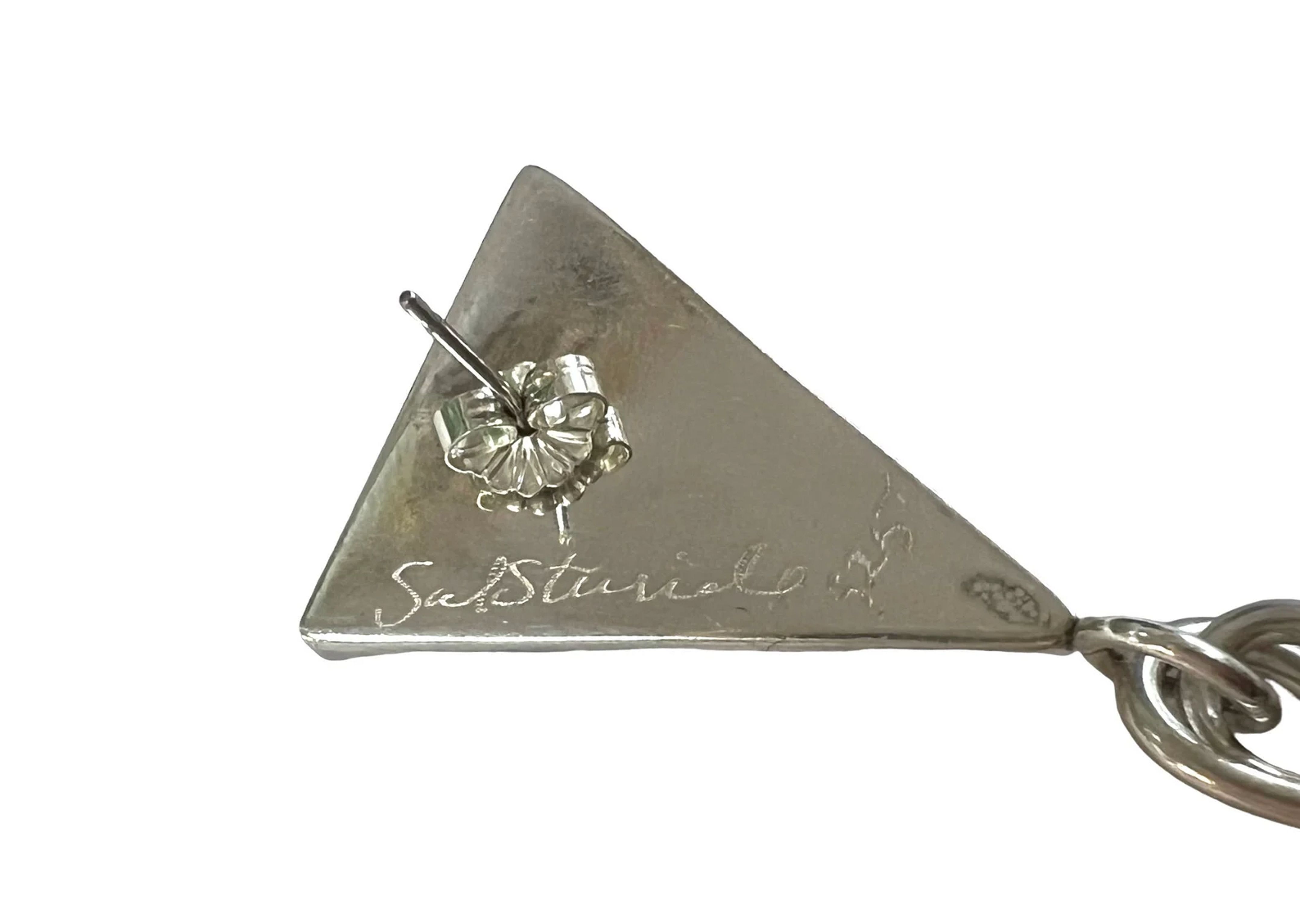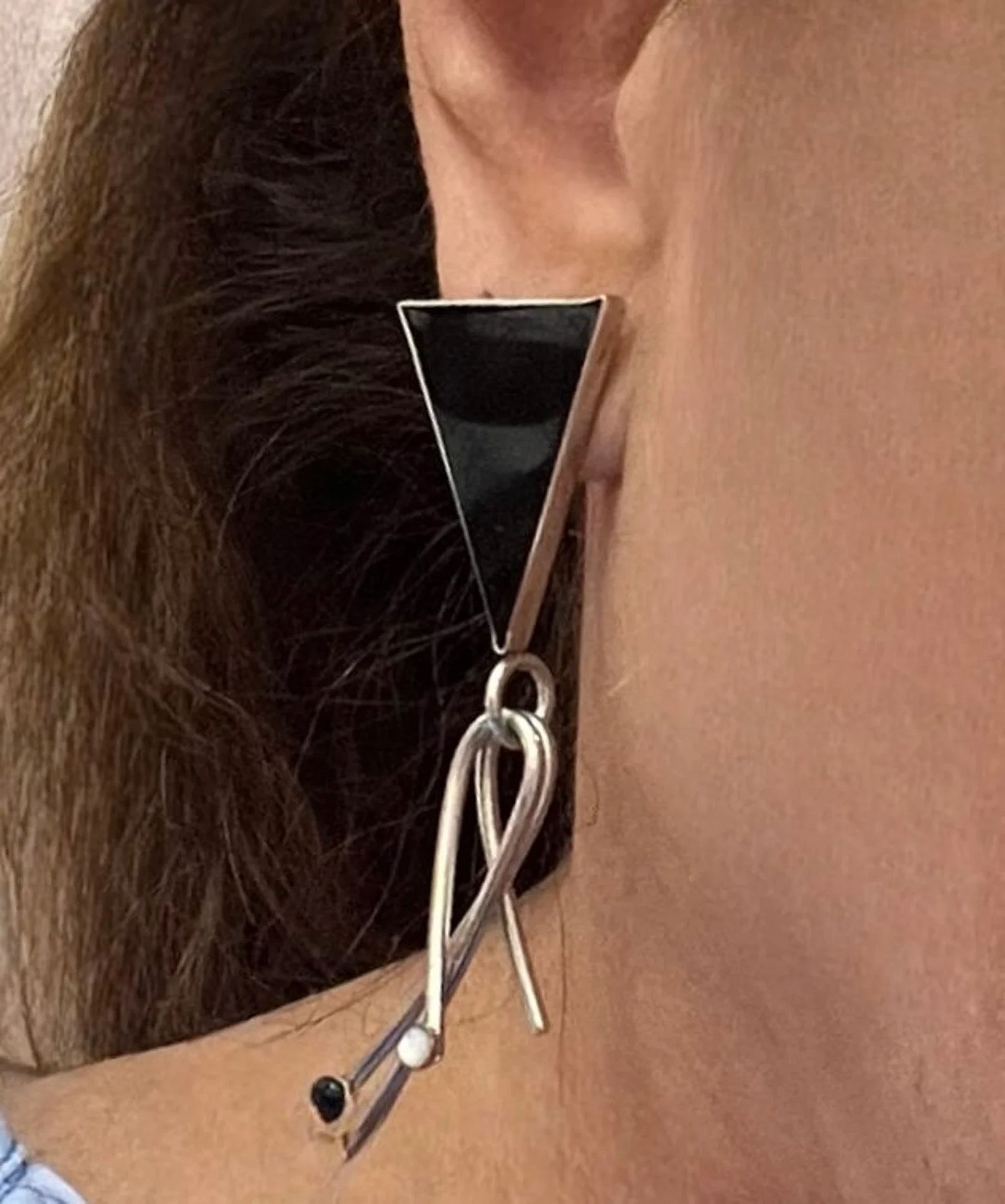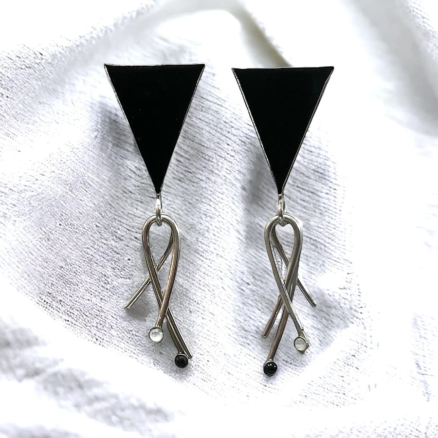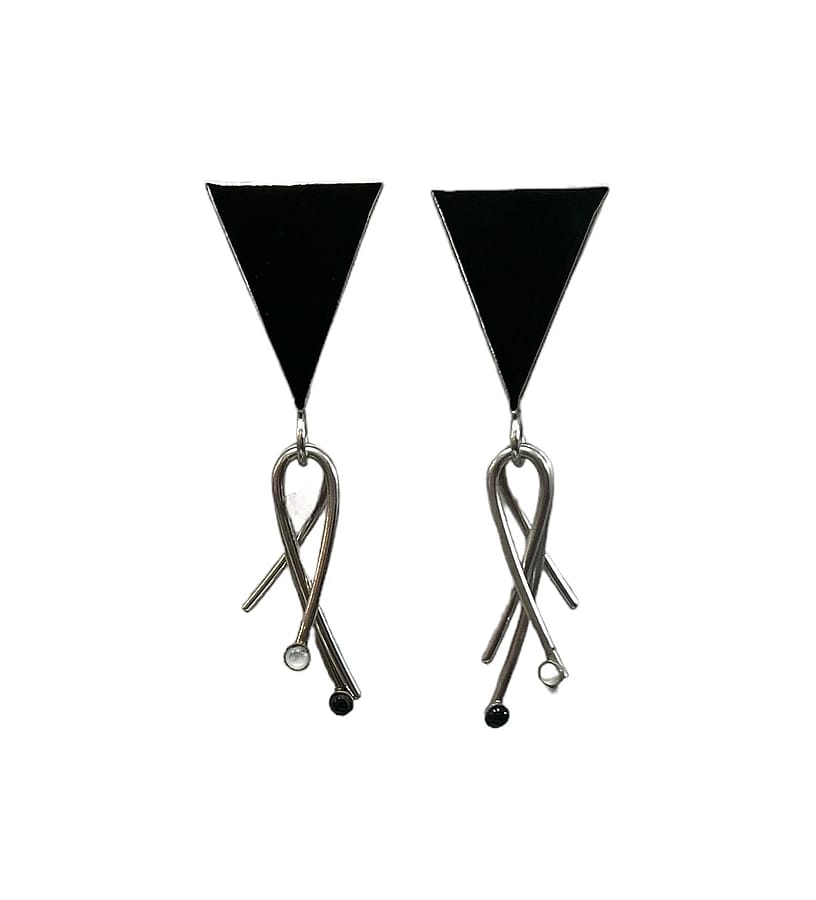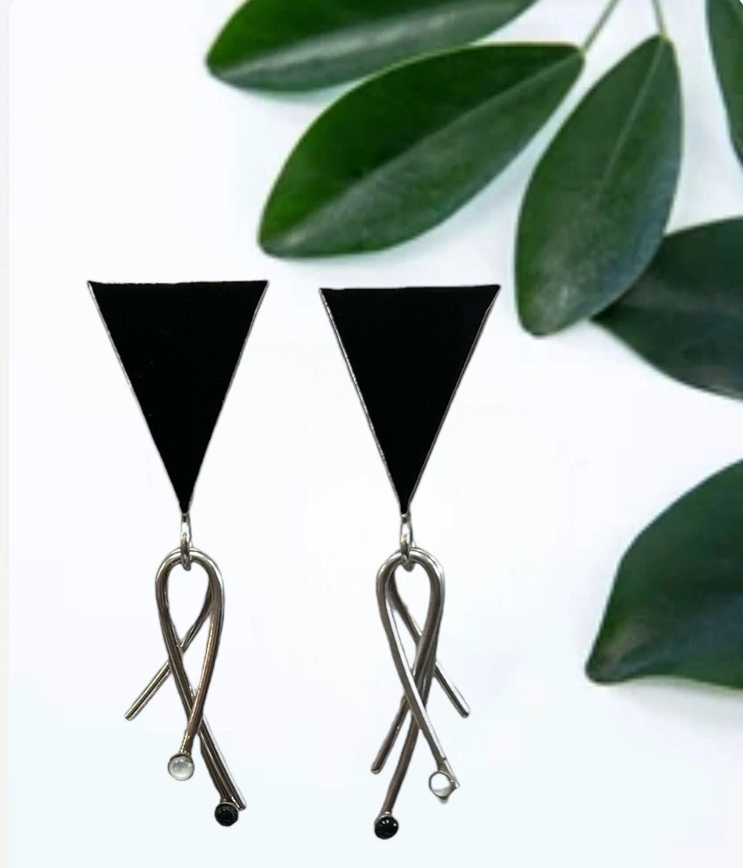 Crafted in sterling silver, these earrings exude an architectural charm that resonates with the futuristic and experimental trends of the era. The sterling silver setting complements the striking onyx, creating a captivating contrast that's as bold and stylish as a graffiti art mural.