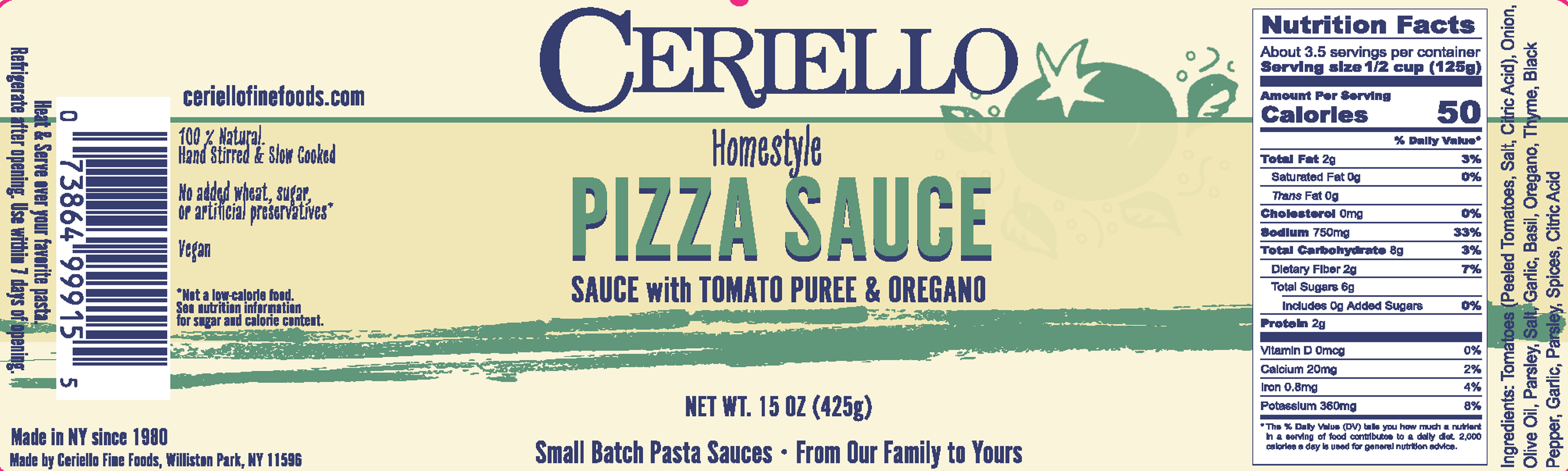 A smooth sauce with the distinctly herbal touch of oregano, this sauce is great for your homemade pizzas, of course, but it's equally good on steak pizzaiola, in eggplant parmesan, or for dipping mozzarella sticks. If you like our Spaghetti Sauce, this is it's bolder cousin.