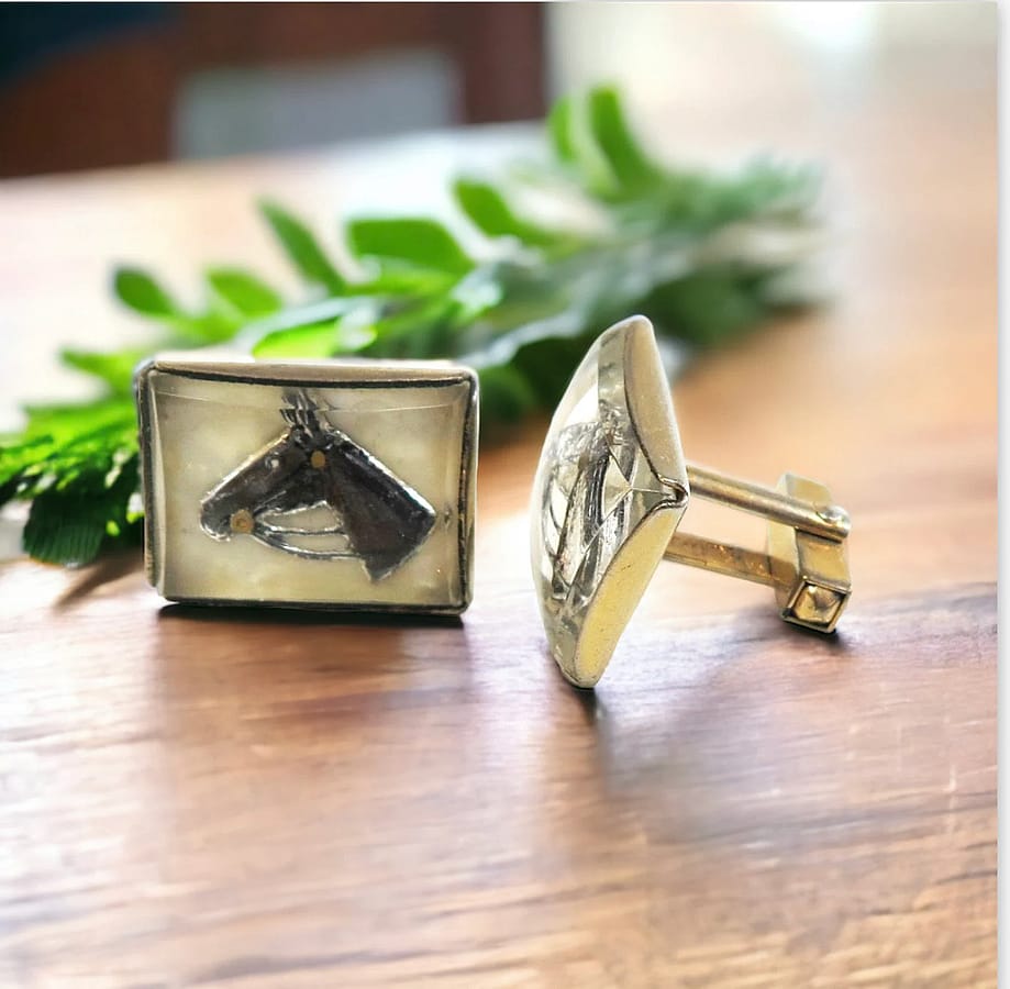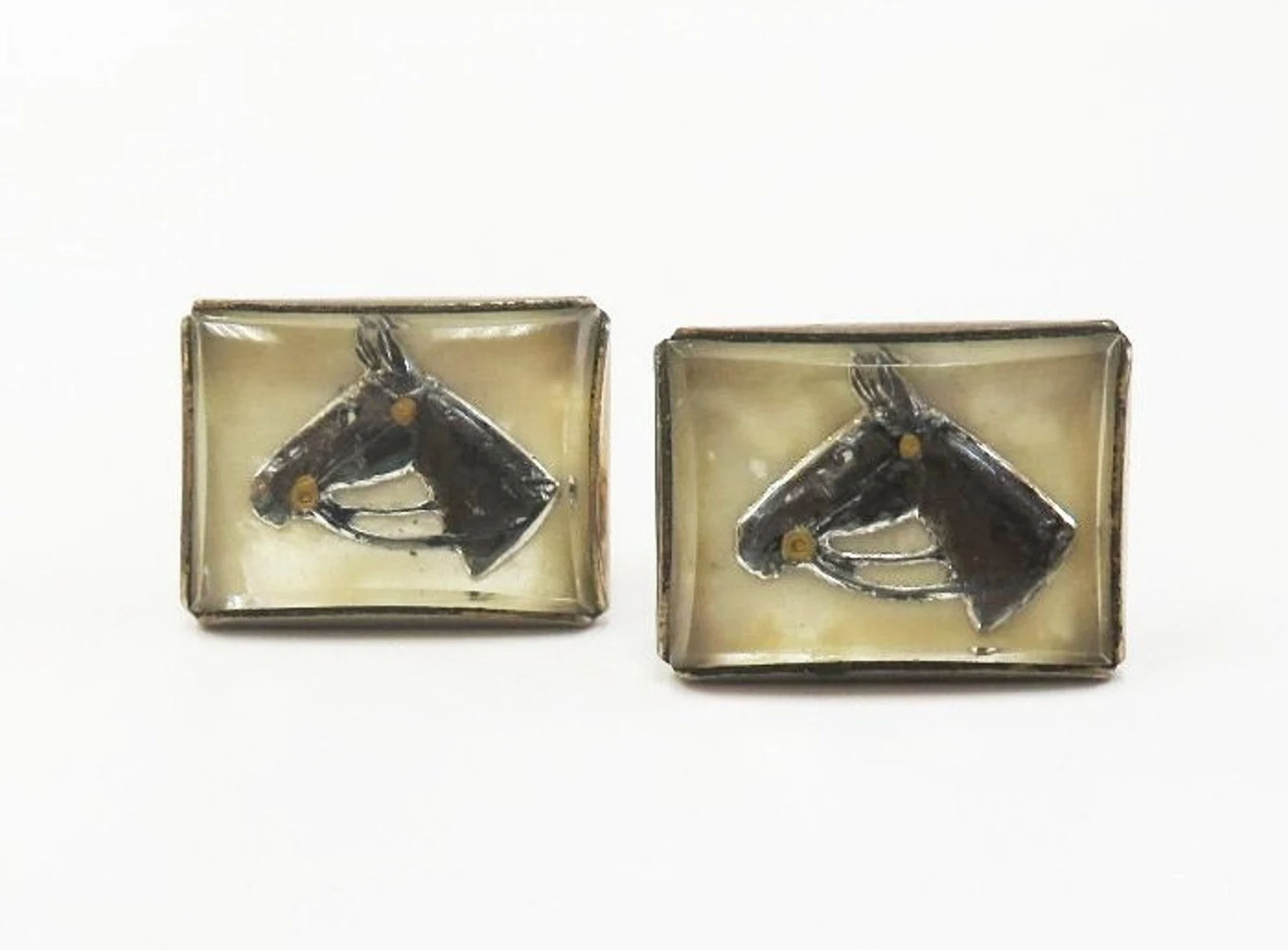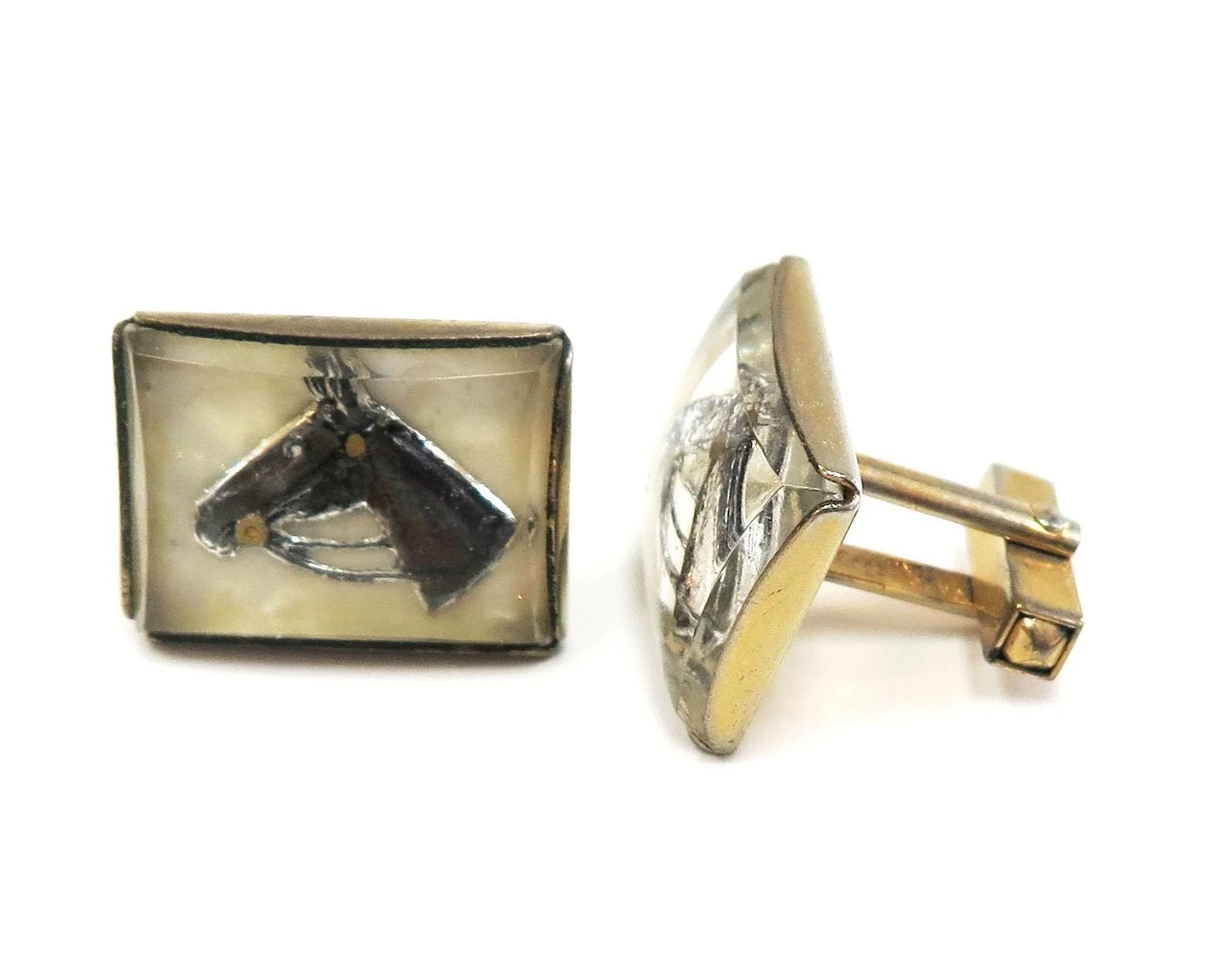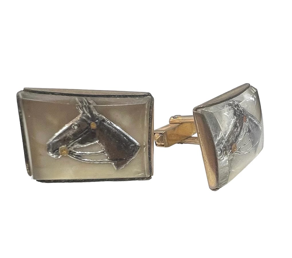 These vintage Anson Cufflinks are made from rock crystal cabochons carved from the flat back and then painted.