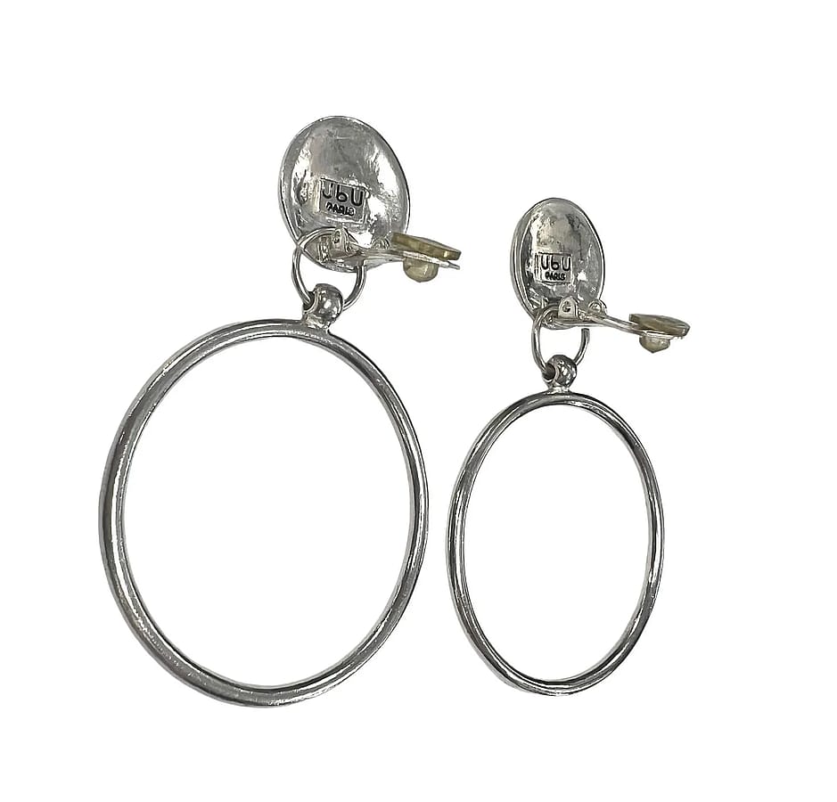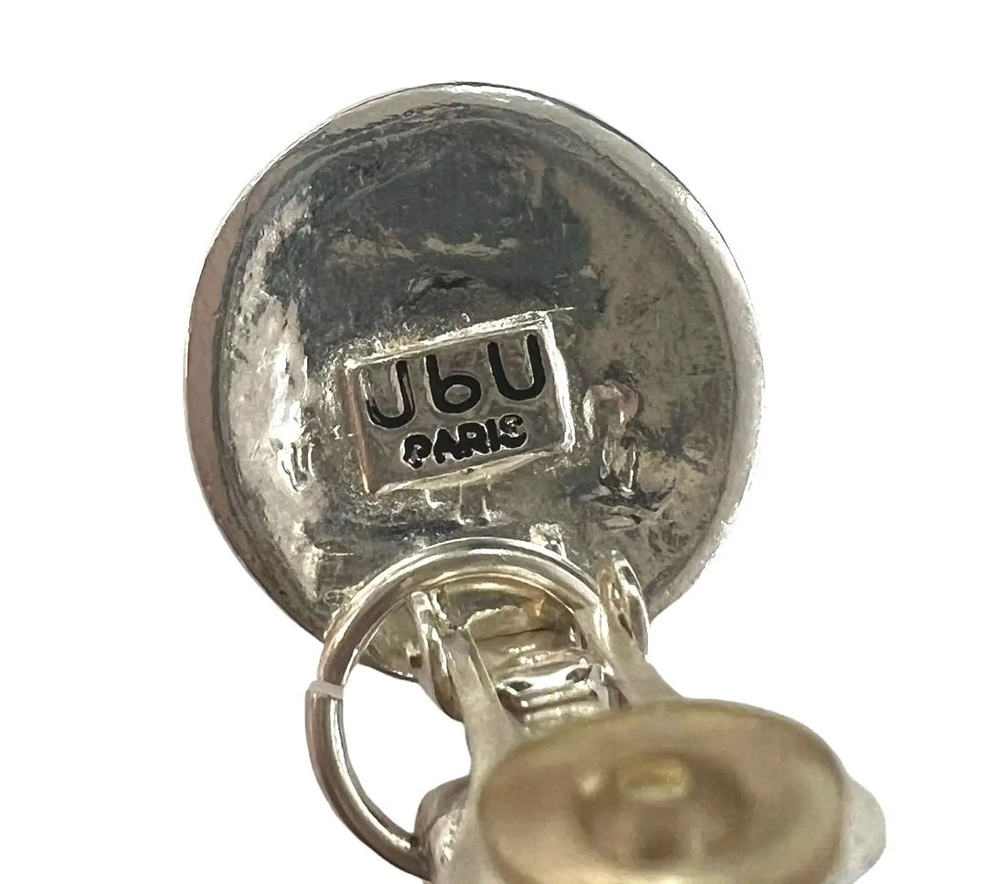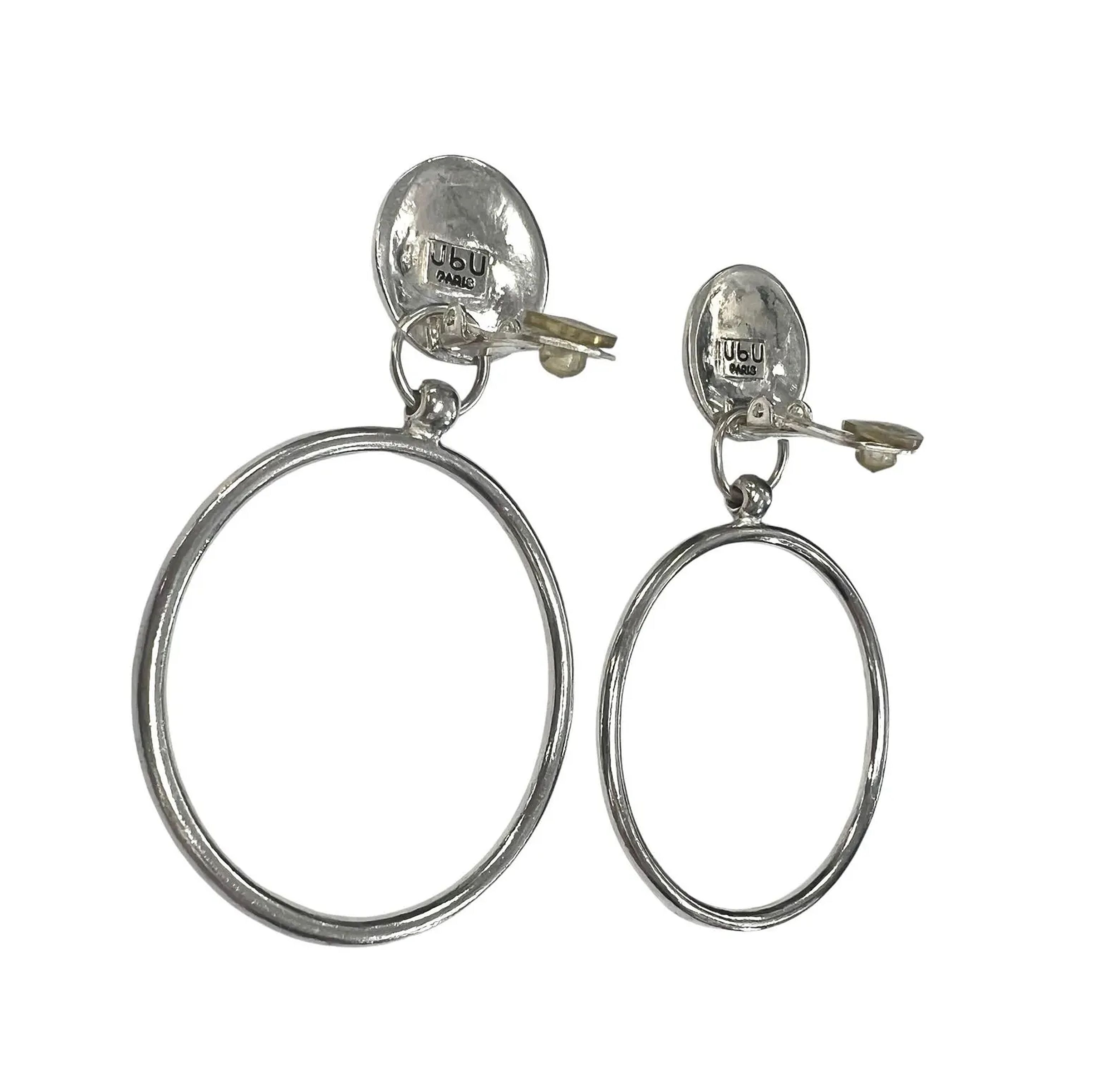 Designed and signed UbU Paris, these fun and funky dangling clip ons are silver tone. They move when you move, swing when you swing. Very cute and chic.. designed and signed UbU Paris Weight: 26.4 Grams