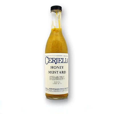 Ingredients: Cider vinegar, mustard, honey, olive oil, pepper, salt, and spices.