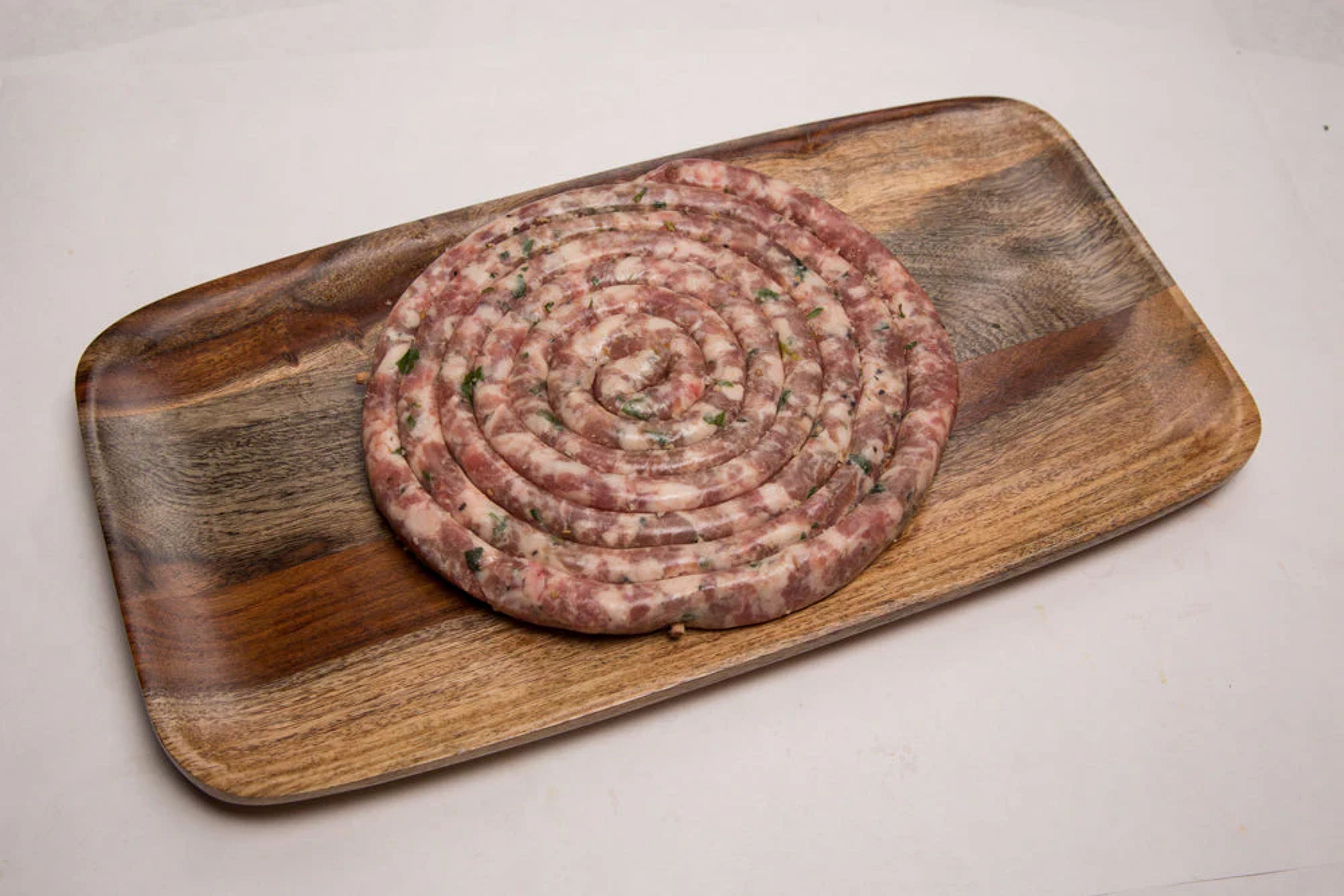 Romano Cheese and Parsley: This is the classic "Italian" flavored sausage. Sold by the link. 4 links per pound. Also available as a "ring", approx 1.25 lb.