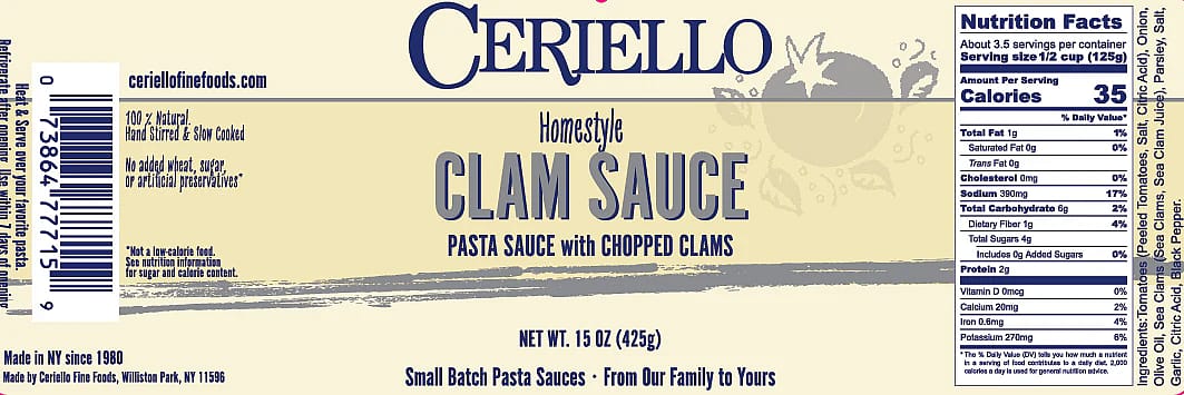 Our kitchen is NY State inspected and USDA inspected. Sealed jars are shelf-stable for 2 years and good in the refrigerator, after opening, for about a week. A 15oz jar is good for about one pound of pasta (3-4 people). A 30oz jar for about two pounds (7-8 people).