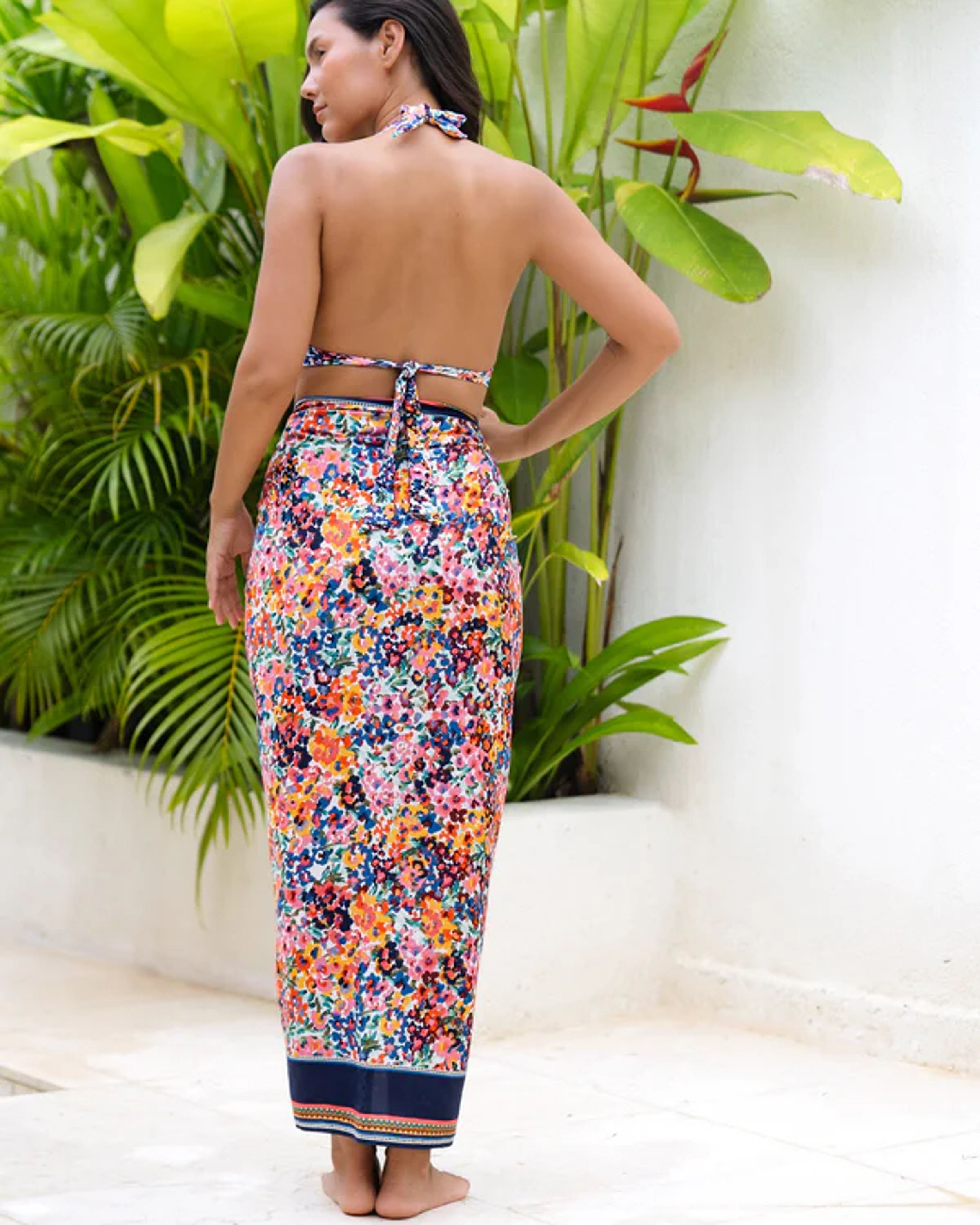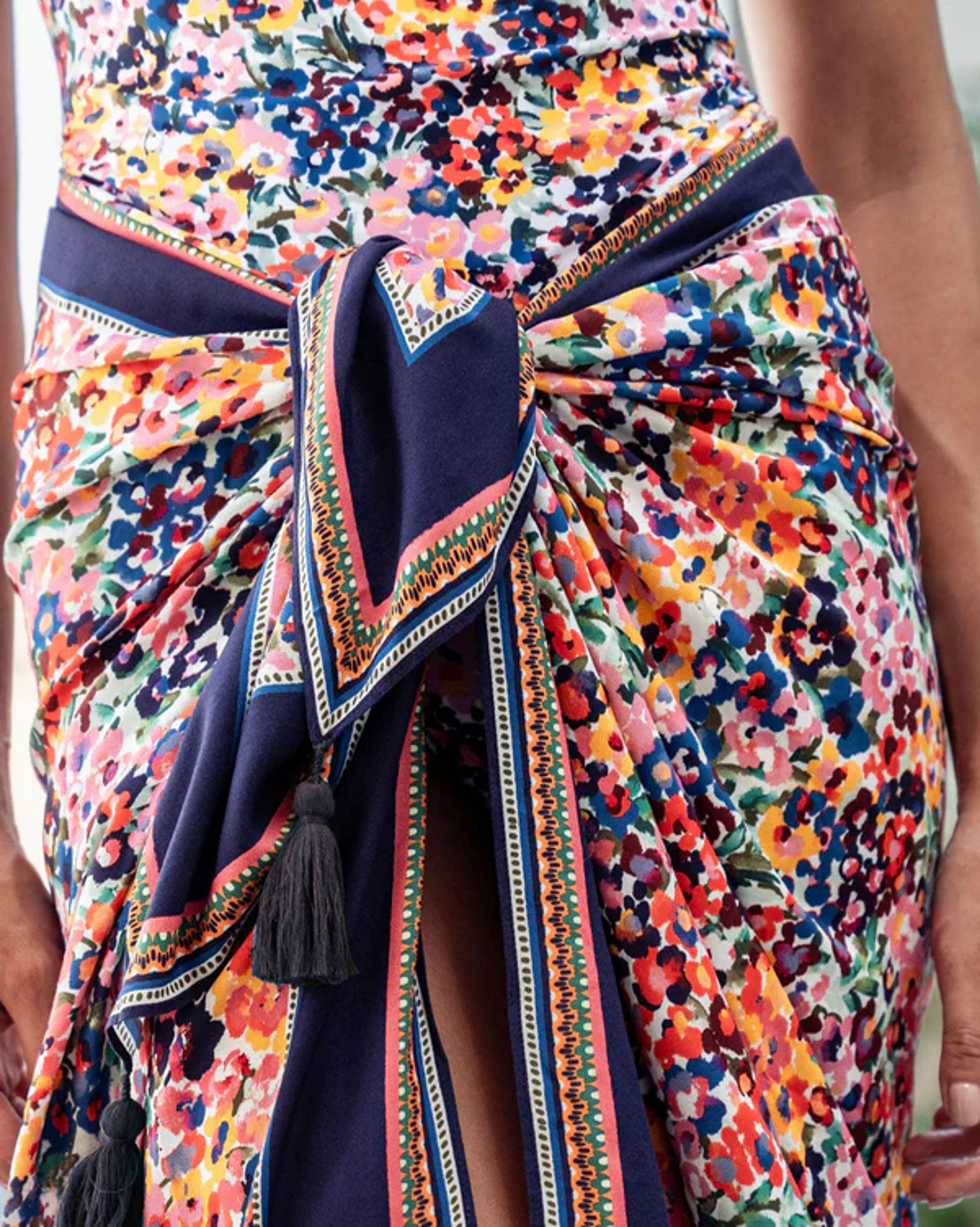 Meet the Melanie Pareo, your go-to layer for beach days and poolside lounging. Generously sized and crafted from soft, breathable rayon, it’s easy to tie and re-tie as you move from sun to shade. Wear it as a sarong skirt, knot it as a chic cover-up, or wrap it around your waist—this versatile pareo is designed for wherever the day takes you. Finished with tassel trim for a touch of movement, it’s a must-have for every woman who’s in and out of the water and always on the go.
