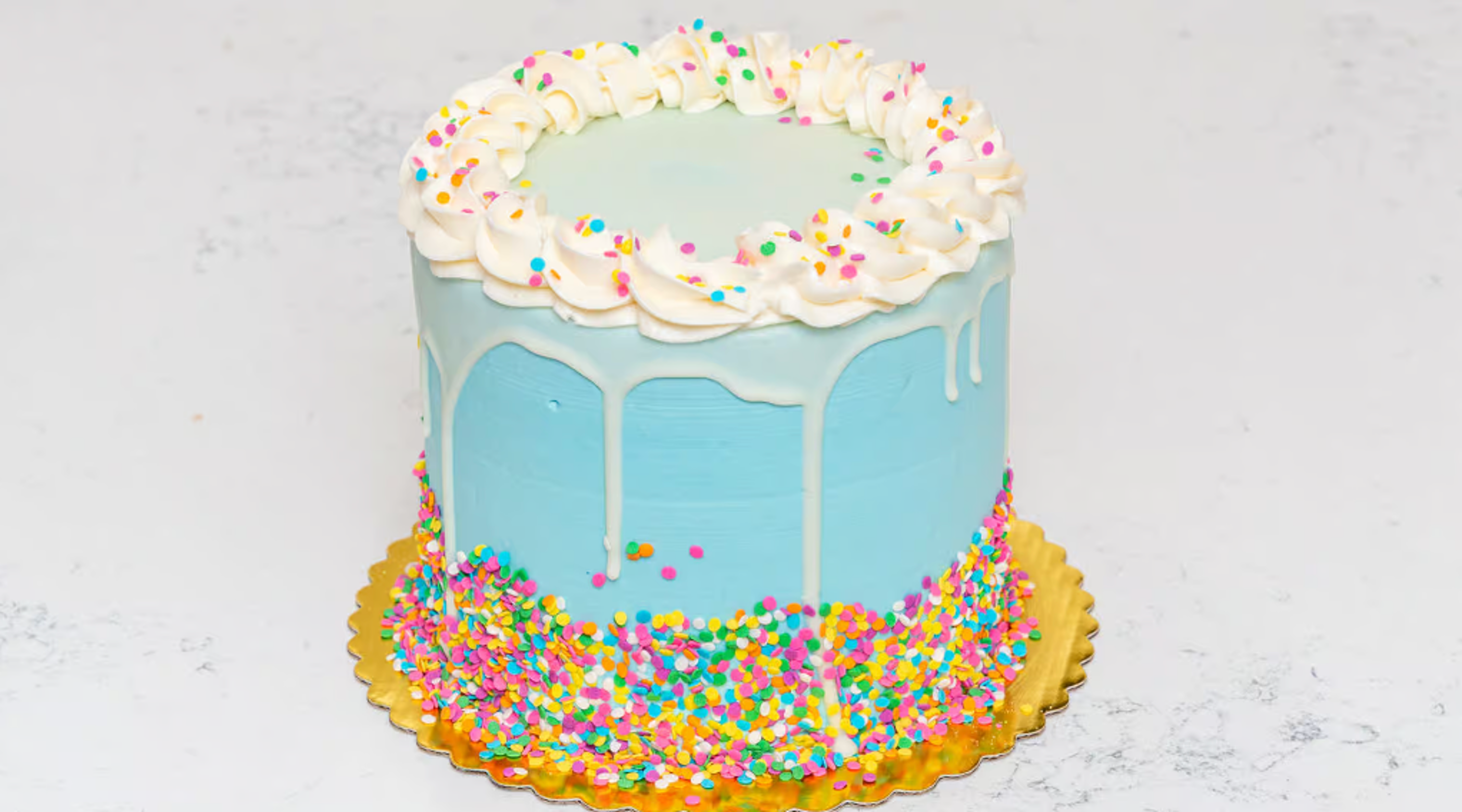Soft, fluffy, vanilla cake with explosions of colored sprinkles mixed into the batter. Iced with swiss meringue vanilla buttercream and loaded up with even more sprinkles.