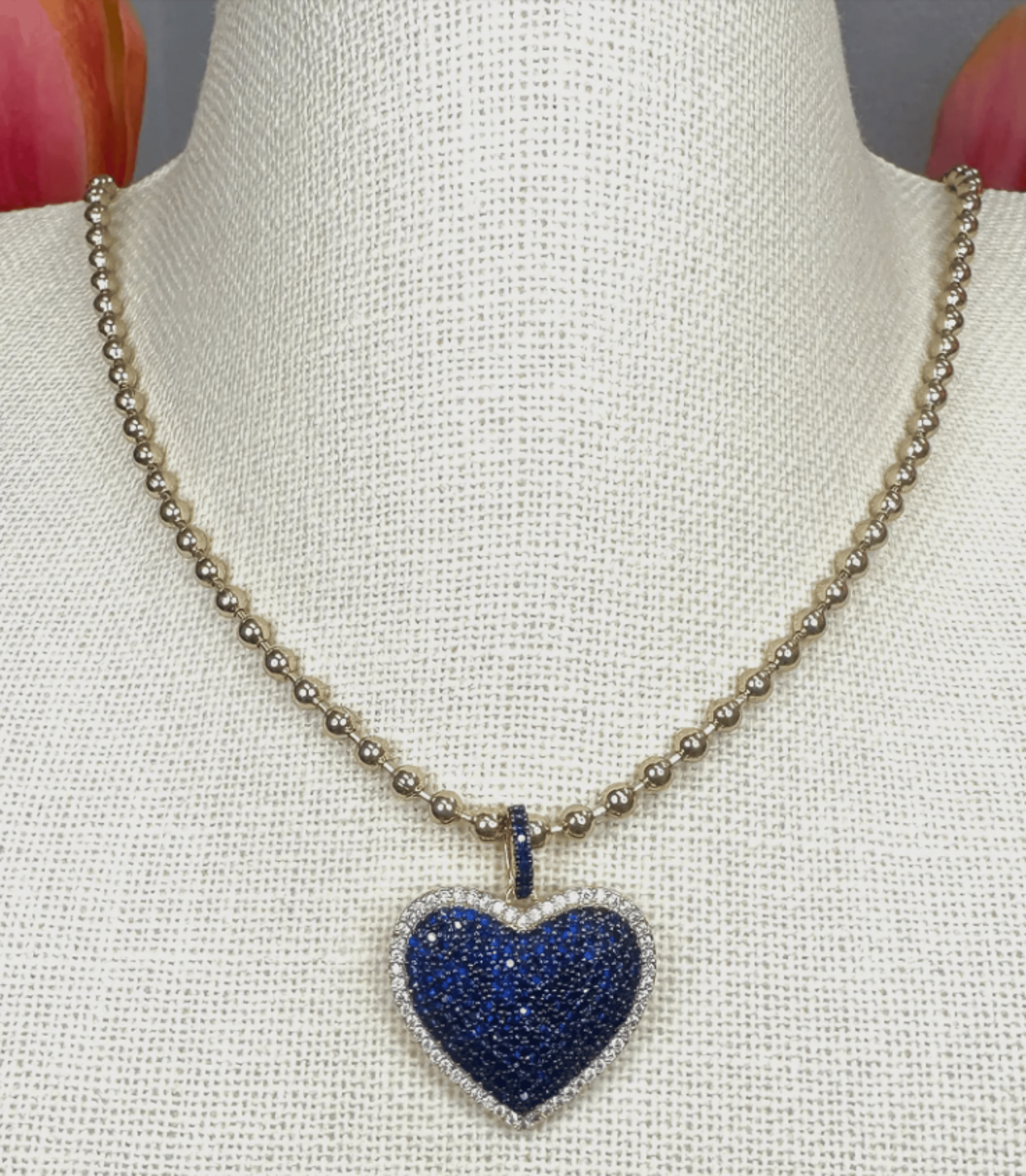 Stunning sapphire crystal necklace on ball chain. Please do not spray perfume or hairspray near necklace.