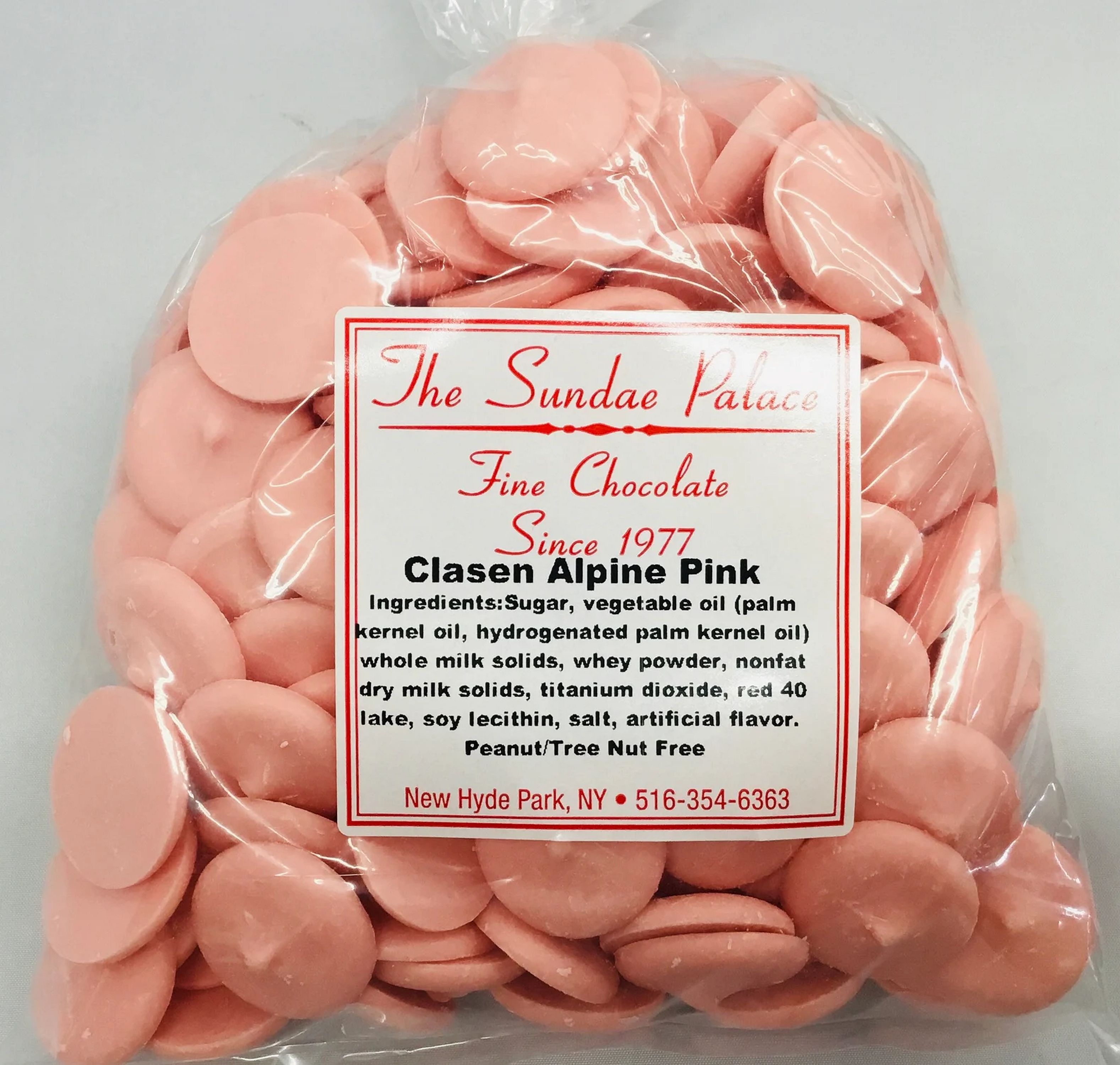 Clasen Alpine Pink Chocolate Melting Wafers Peanut/Tree Nut and Gluten Free.