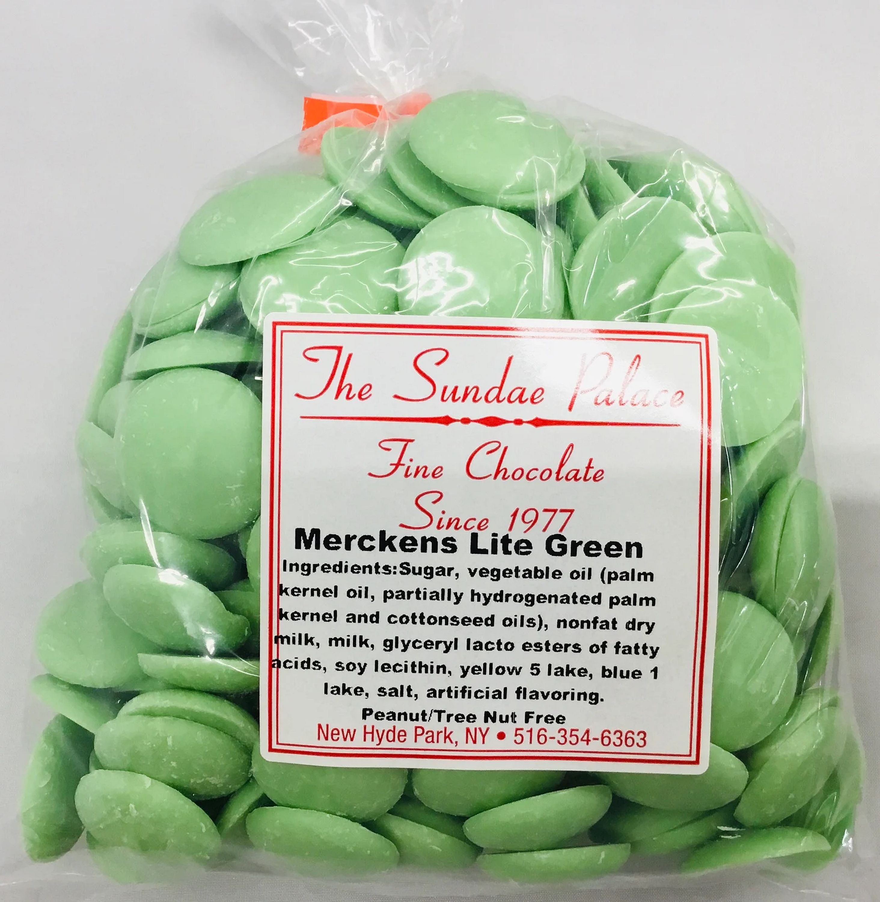 Merckens Lite Green Chocolate Melting Wafers Peanut/Tree Nut and Gluten Free.