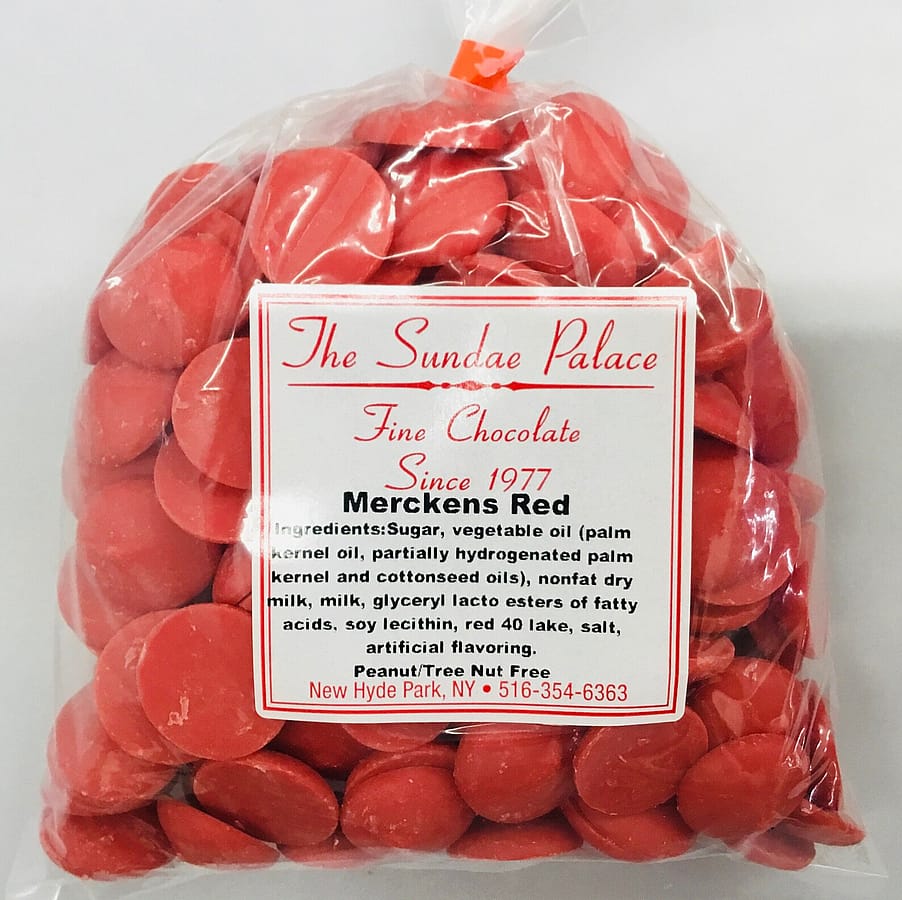 Merckens Red Chocolate Melting Wafers Peanut/Tree Nut and Gluten Free.