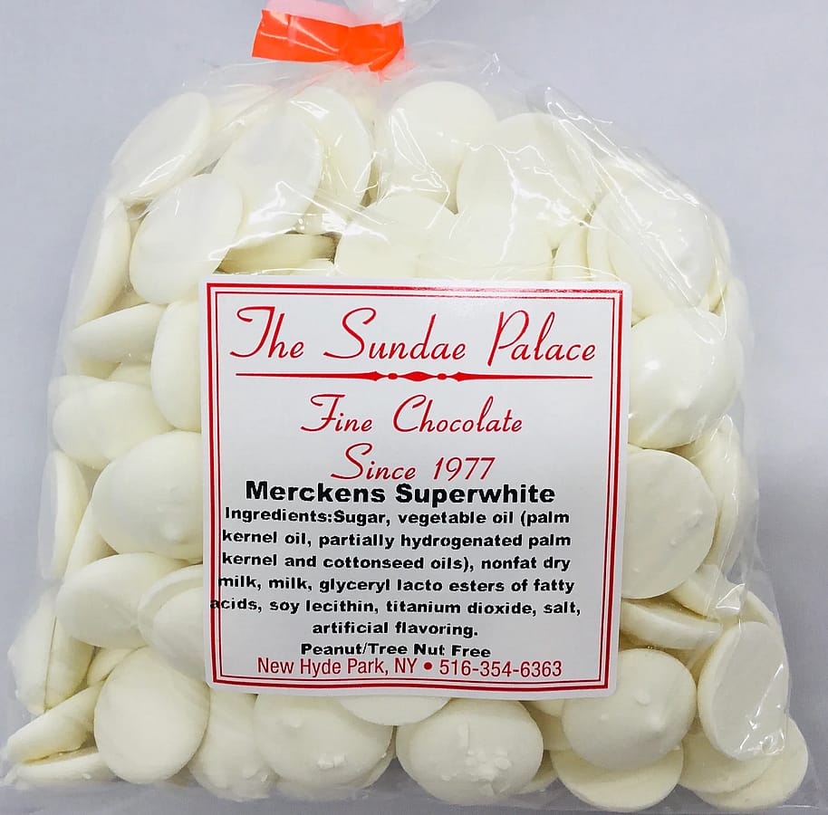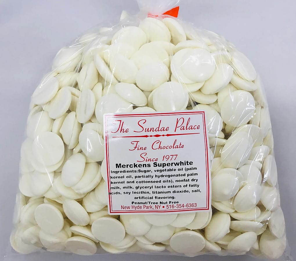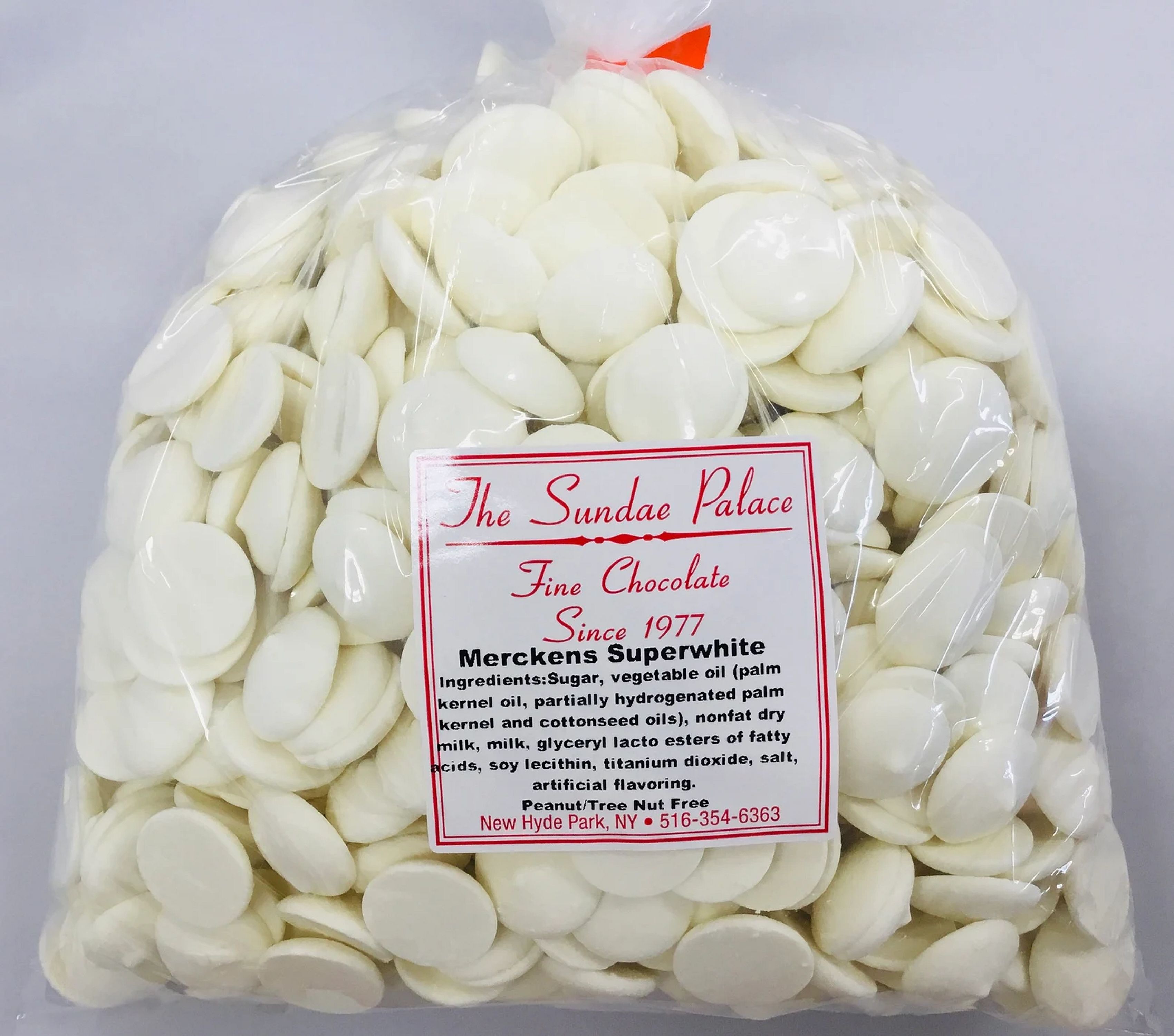 Merckens Super White Chocolate Melting Wafers Peanut/Tree Nut and Gluten Free.