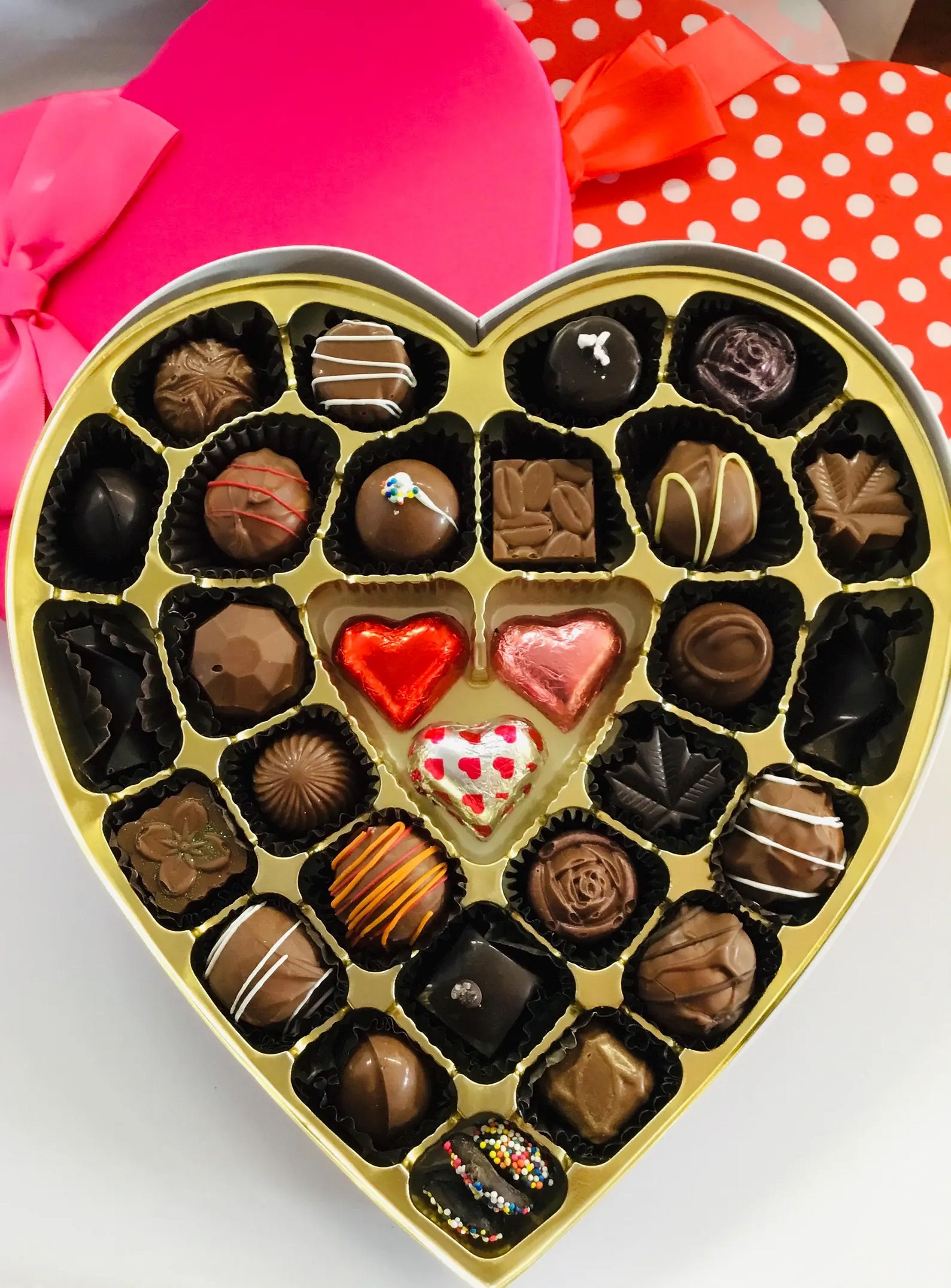 Assorted milk and dark chocolate handmade truffles and caramels. Everything is peanut and tree nut free! #vday26