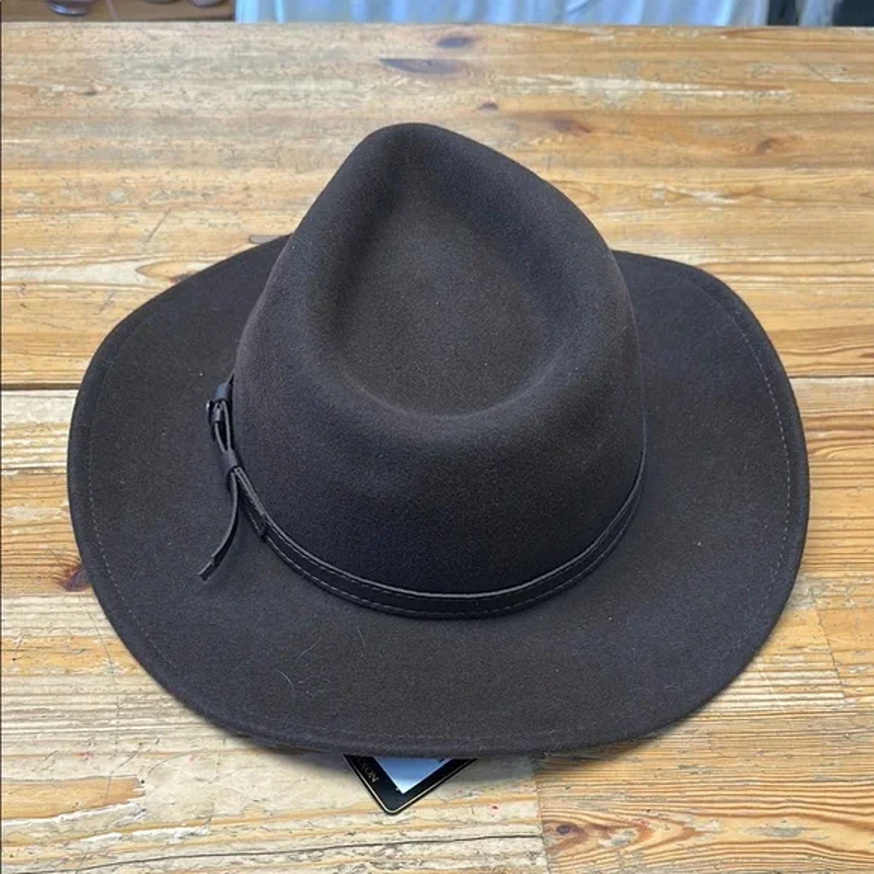 This brown fedora hat is a stylish accessory featuring a wide brim and a classic pinched crown. Its timeless design makes it a versatile addition to any outfit, perfect for both casual and semi-formal occasions. Size- Medium Color: Brown