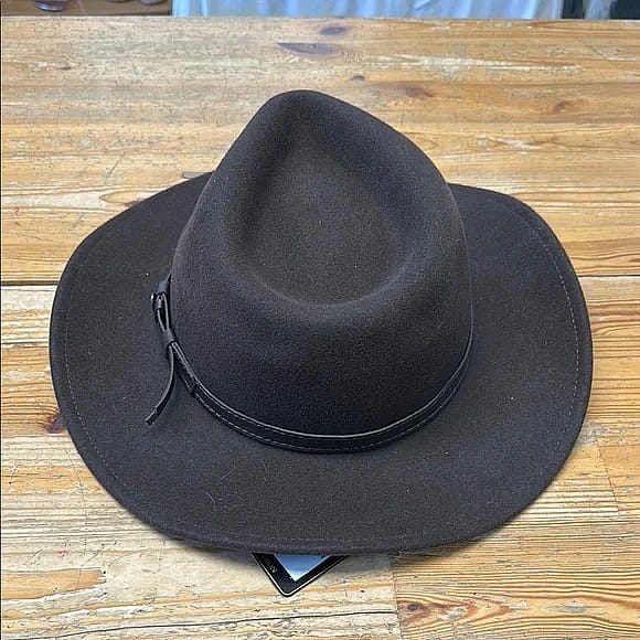 Brown Fedora Hat with Wide Brim and Pinched Crown