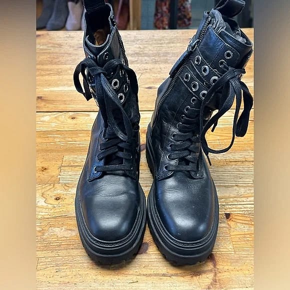 Black leather combat boots. Size 36