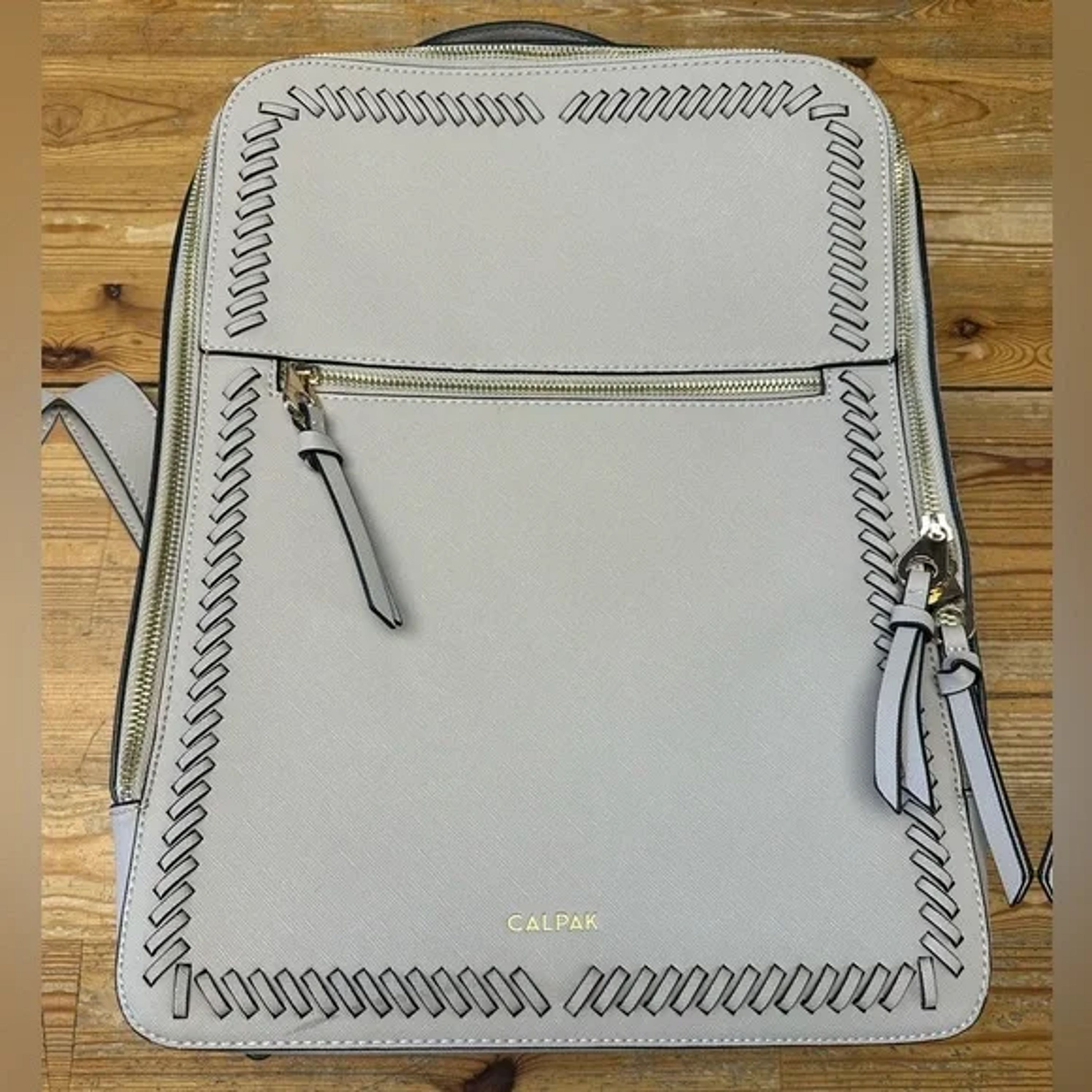Calpak Backpack Beige 15.5 Inch Laptop Faux Leather