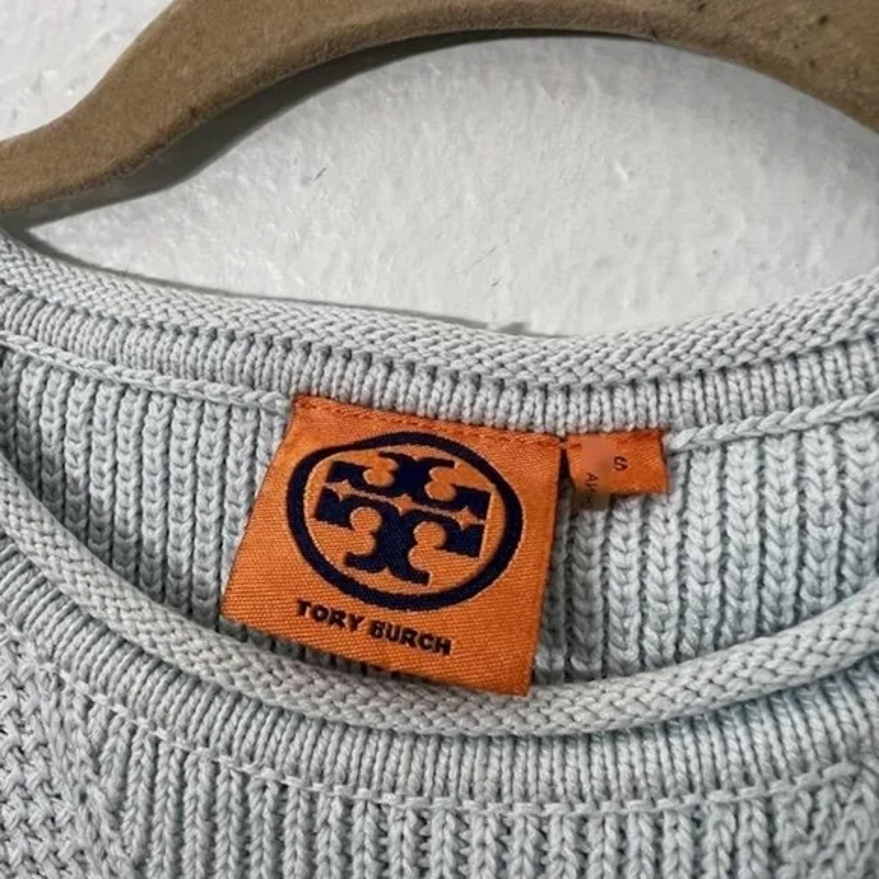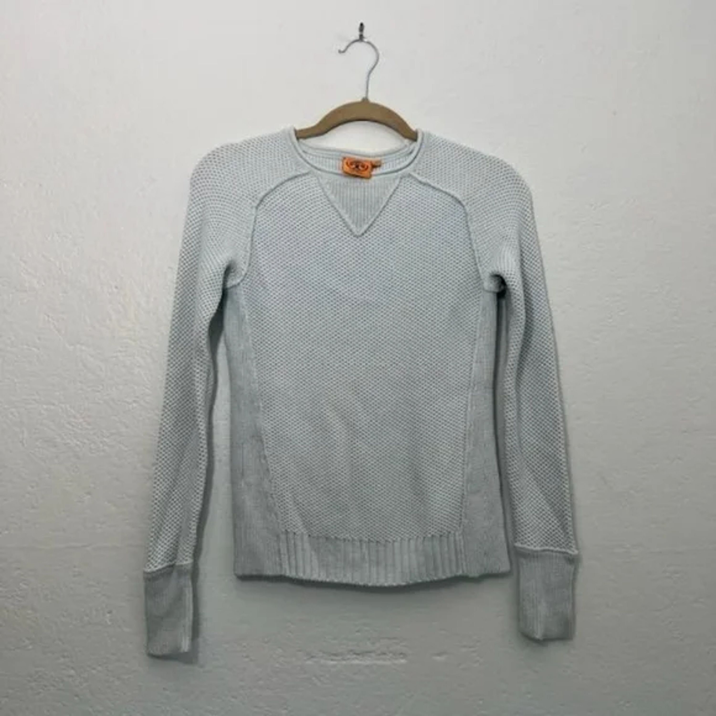 Tory Burch blue waffle knit crewneck sweater Size small