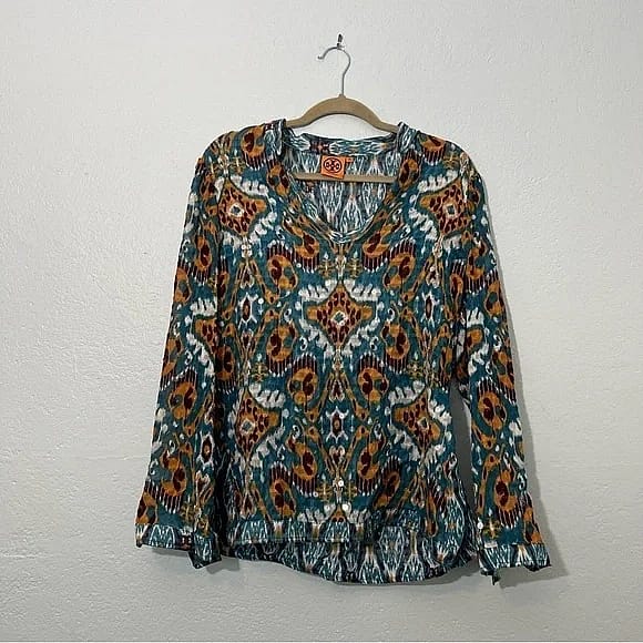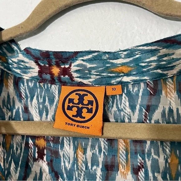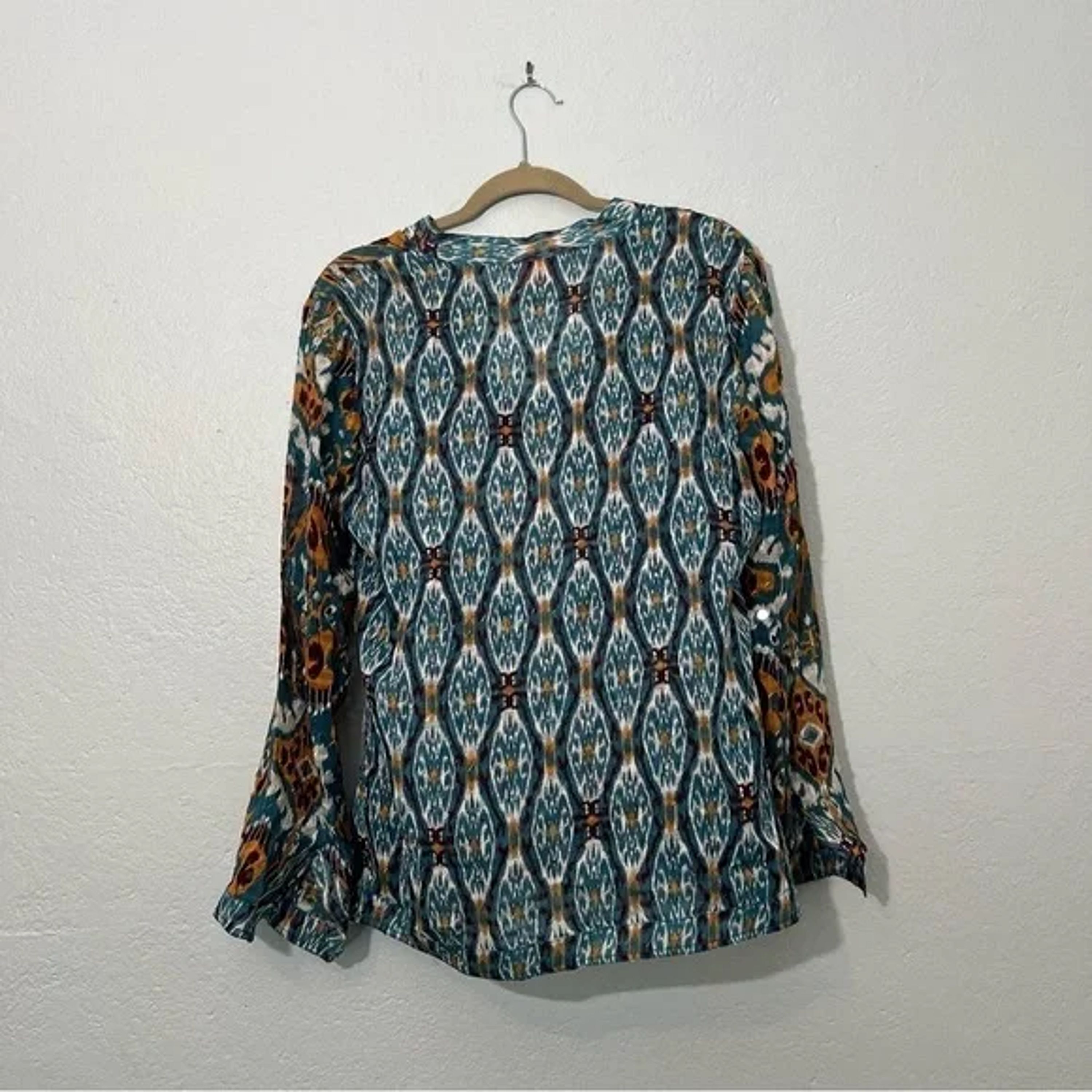 Lands' End Pink and Blue Short Sleeve Tie Front Blouse