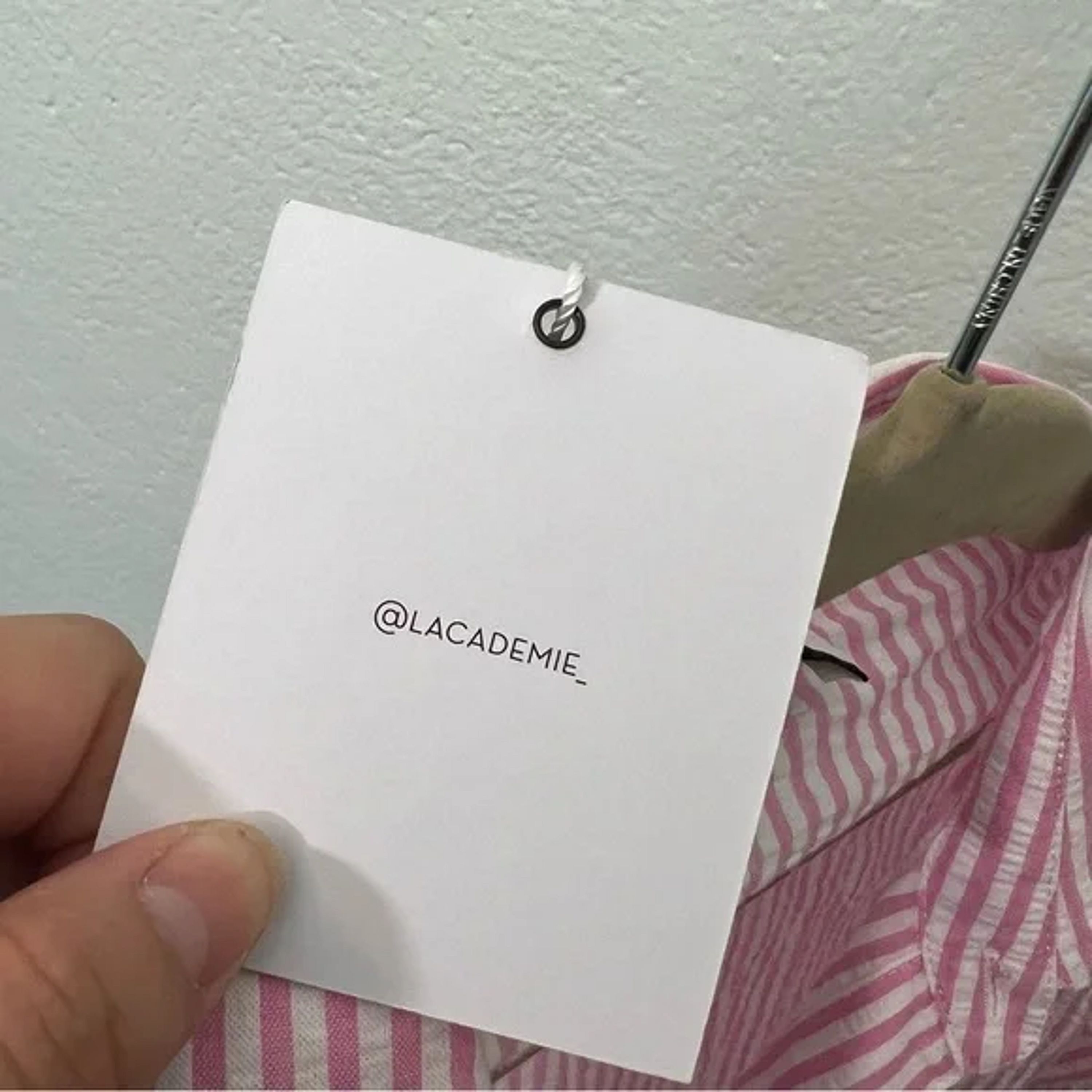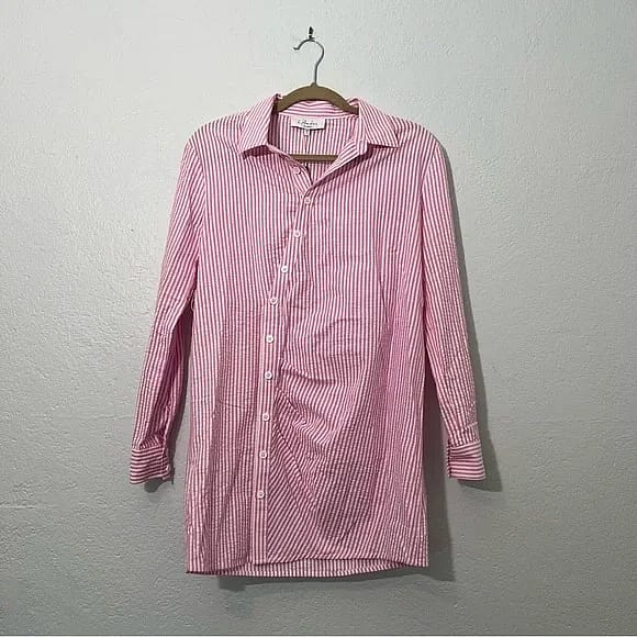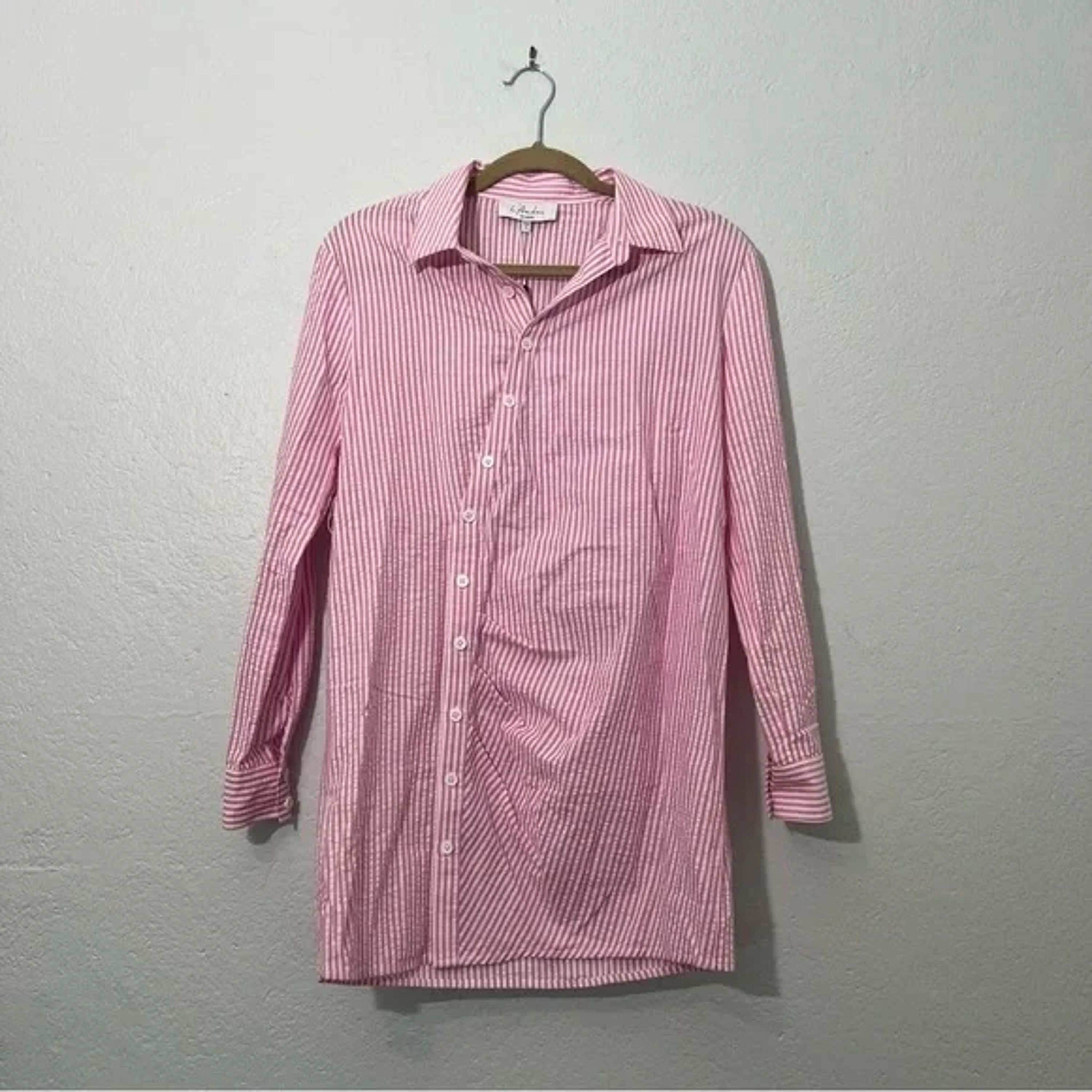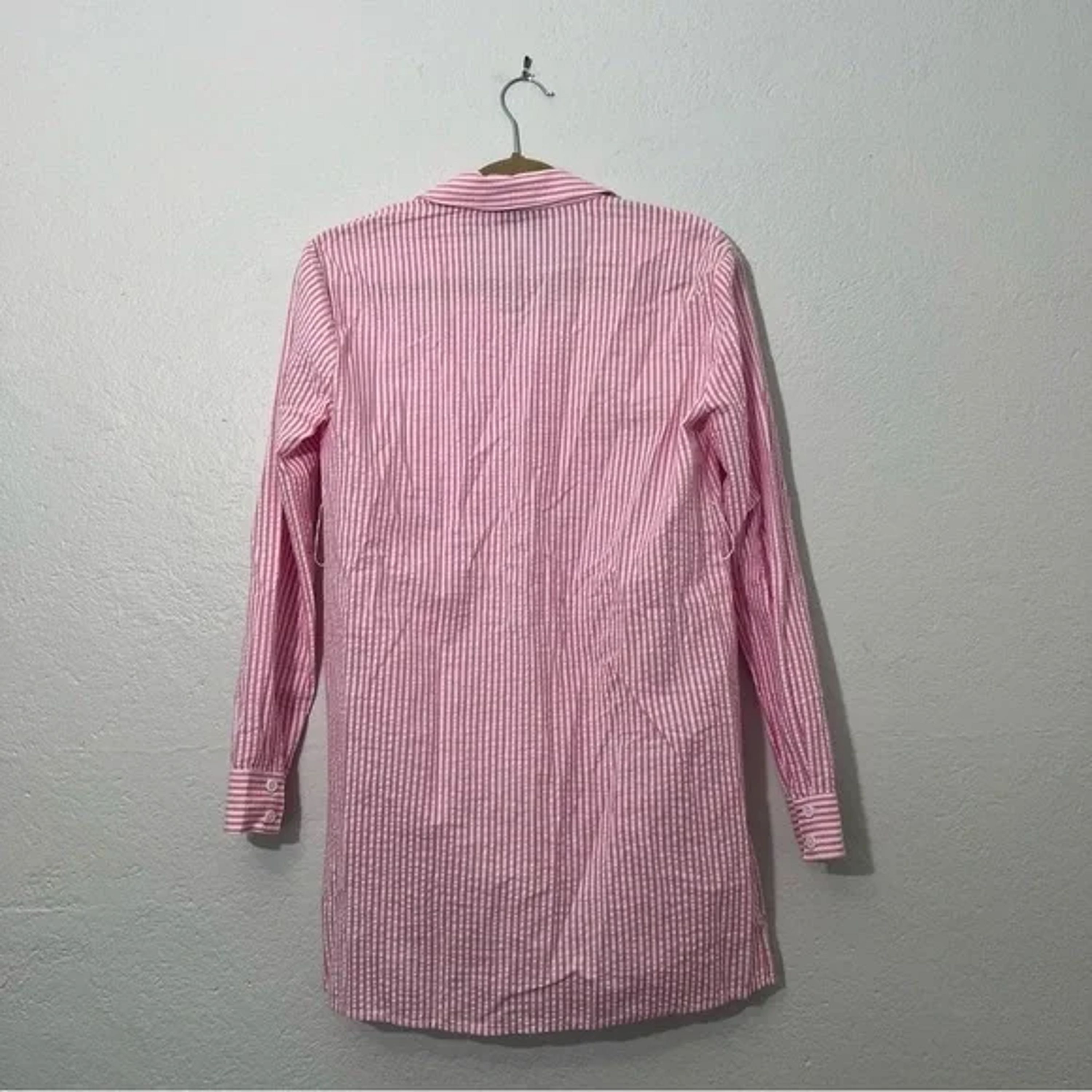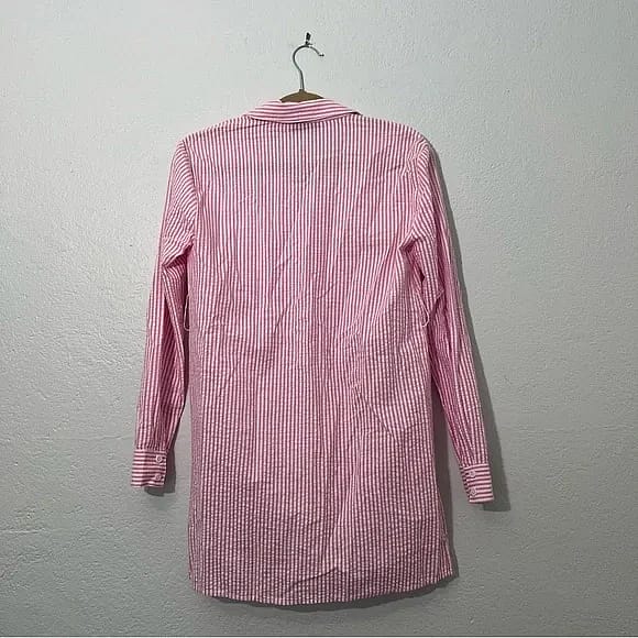 Lands' End Pink and Blue Short Sleeve Tie Front Blouse