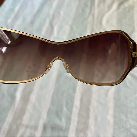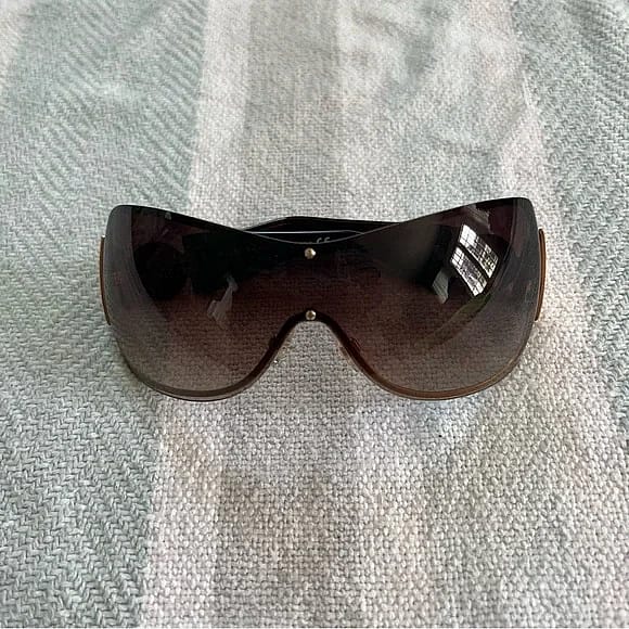 Shield shape one frame One arm is a bit looser then the other One Size Color: Brown/Gold