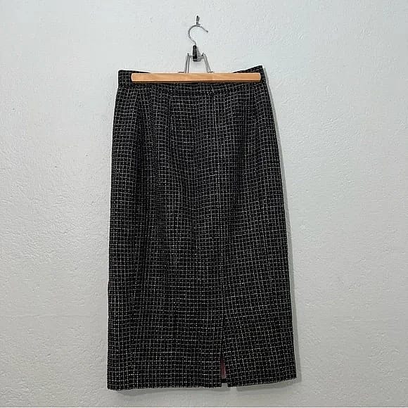 Iridescent silvery plaid design Silk lining Size 38 which is a medium in Us size according to size conversion charts. PLEASE LOOK AT MEASUREMENTS Approximate measurements Waist 14 inches flat Length 28