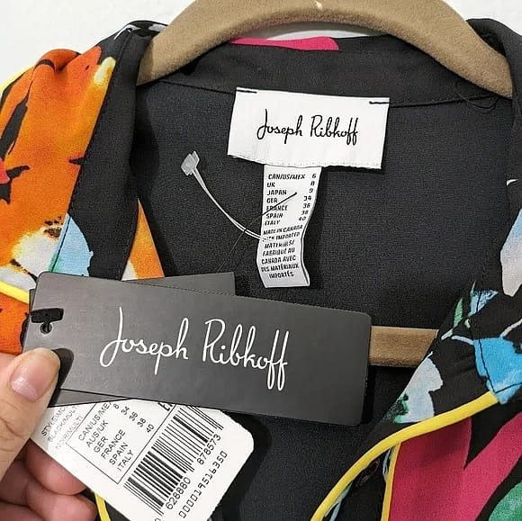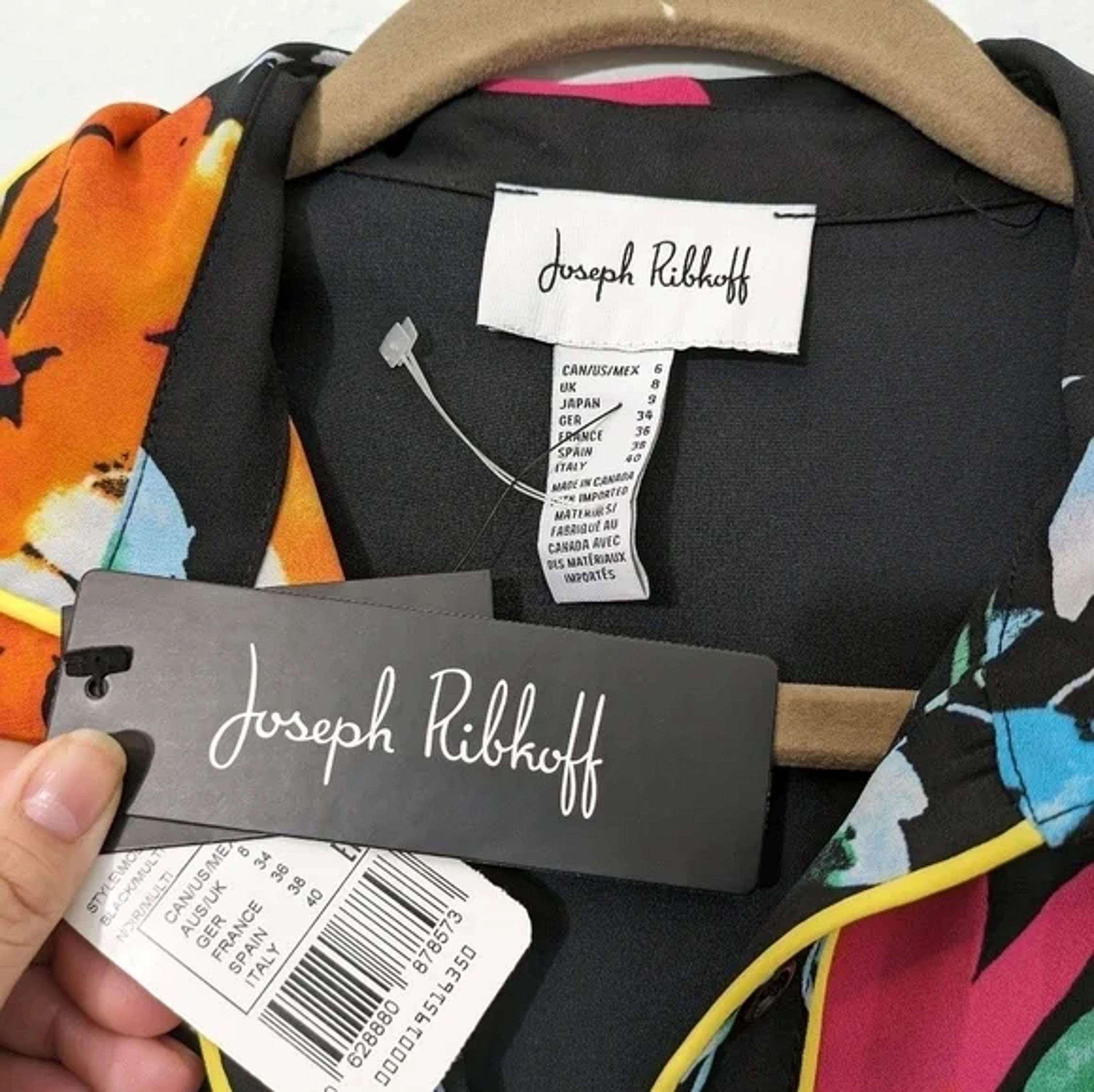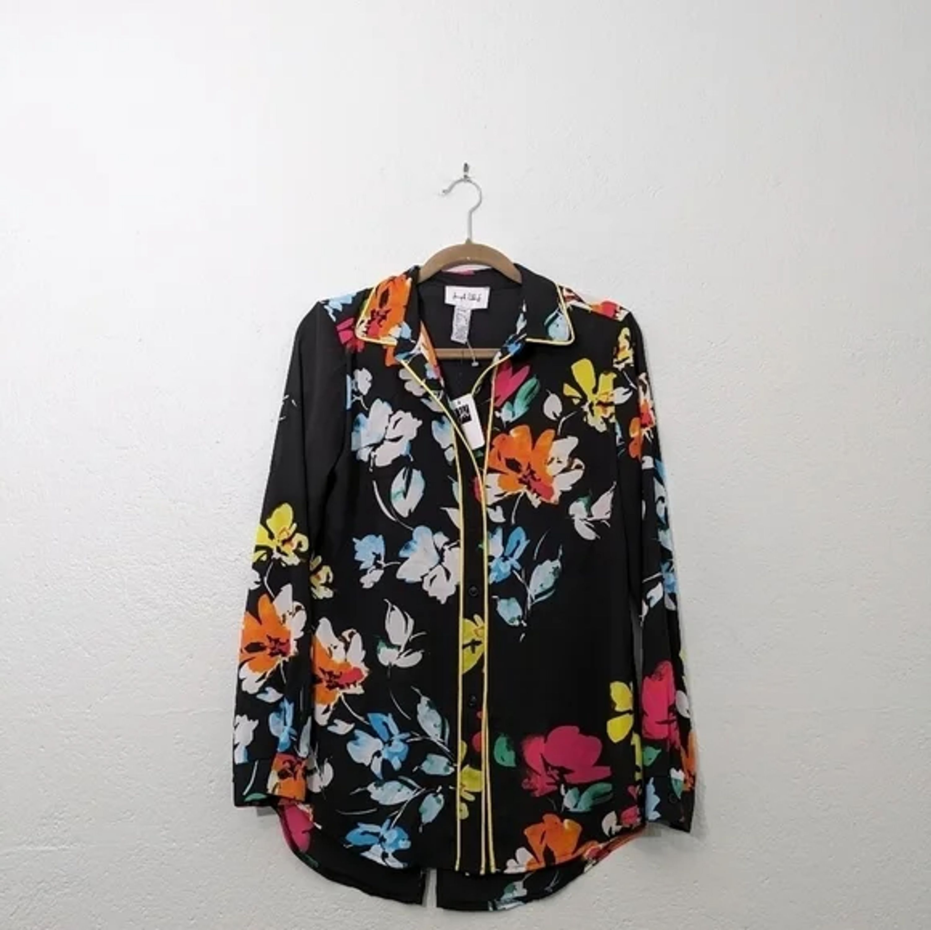 Joseph Ribkoff Black-Multi color floral button up blouse button down shirt size
