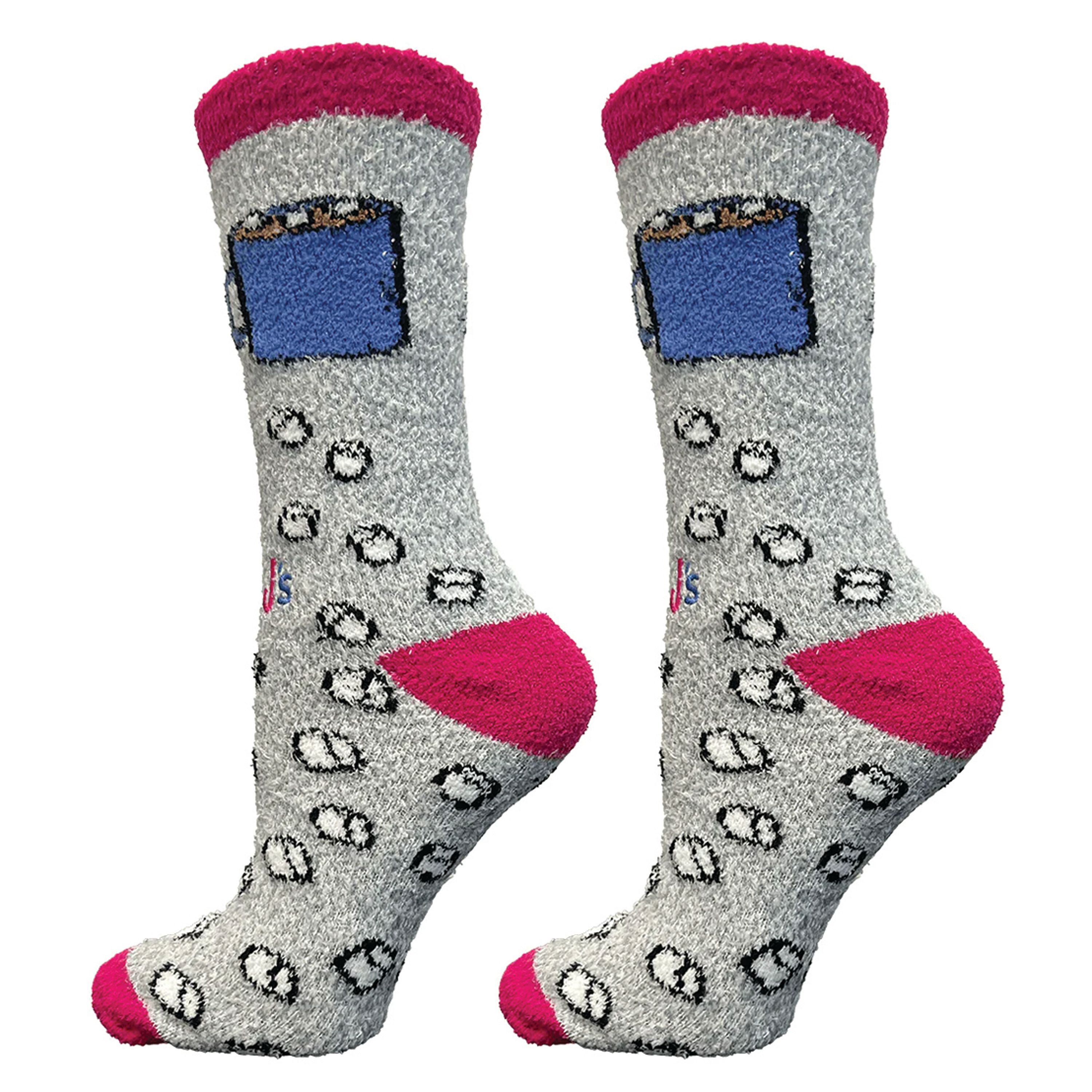 These Hot Chocolate Fuzzy Crew Socks by John's Crazy Socks are perfect to slide on at the end of the day when you want to cozy up with a mug of hot chocolate, tea, or apple cider!
