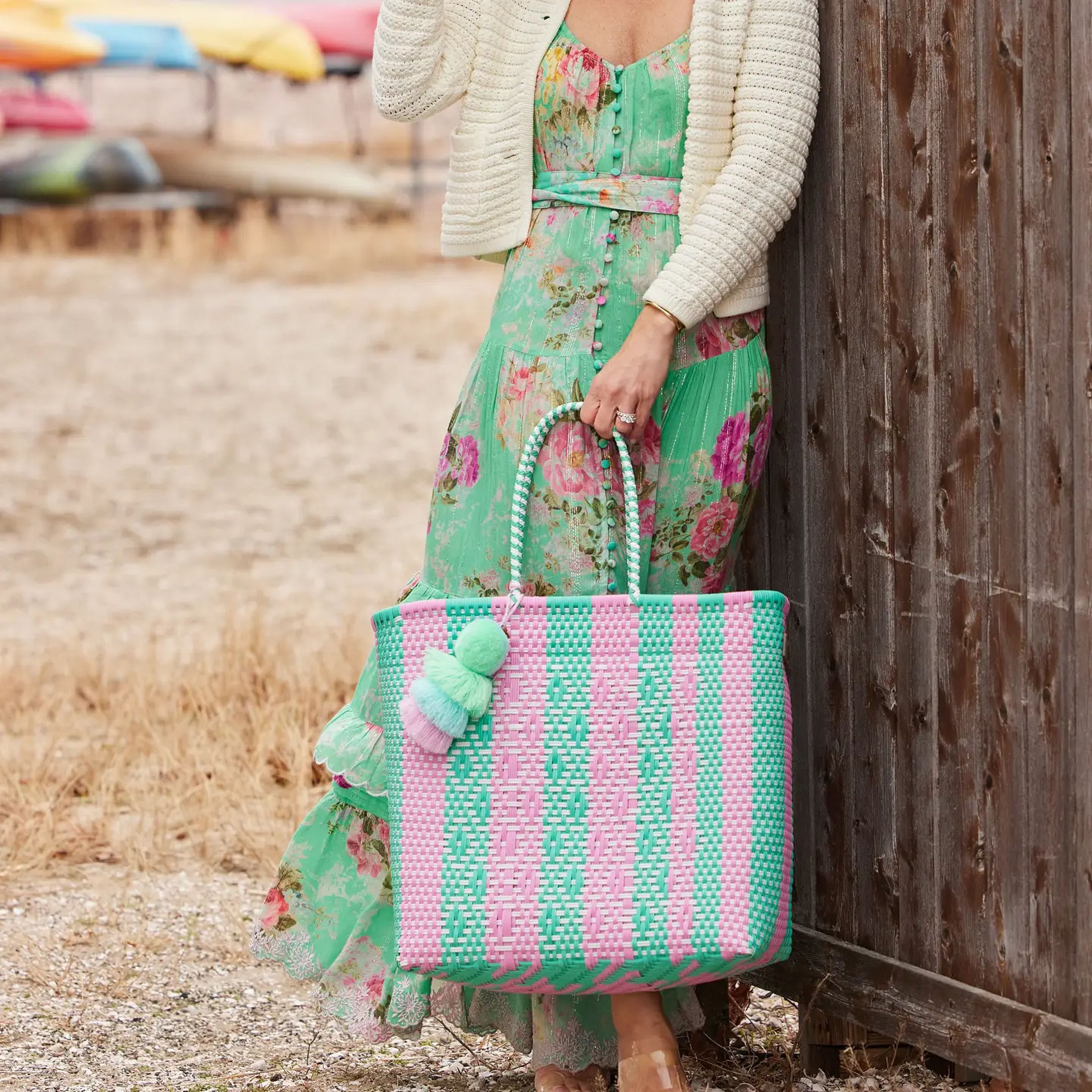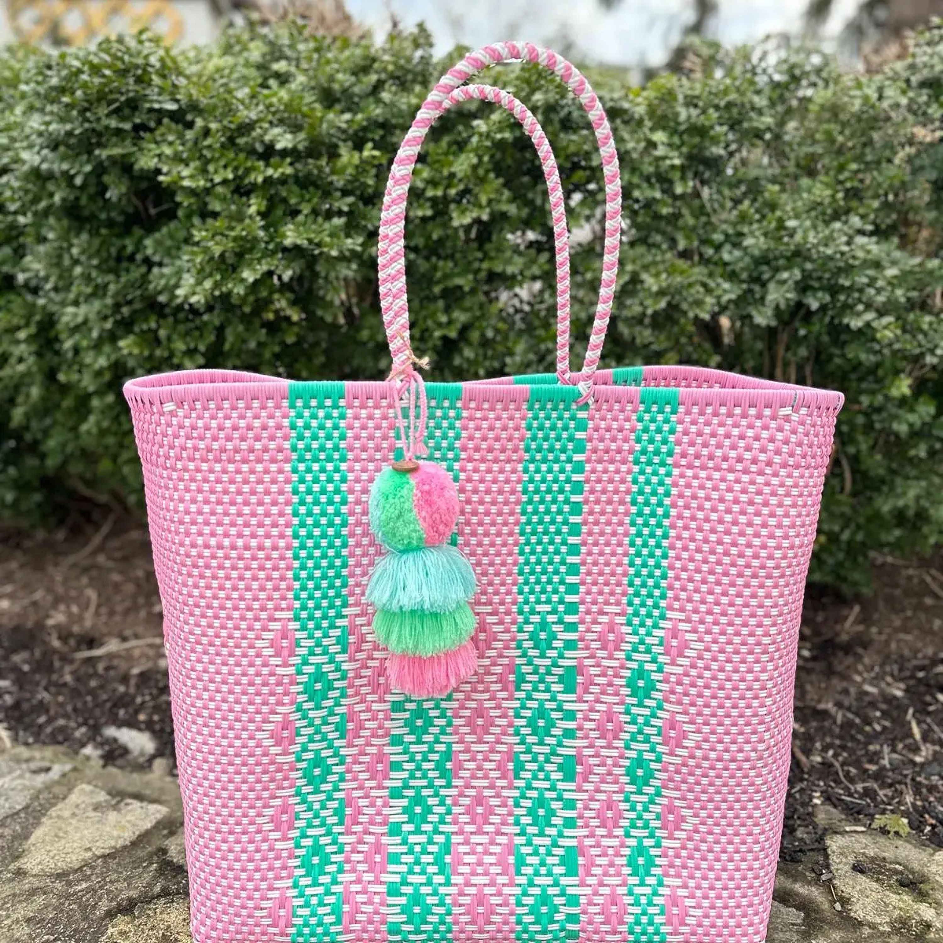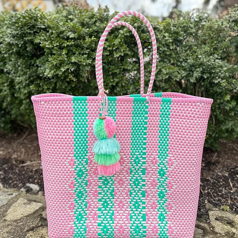 The Core Collection features an exquisite array of totes, showcasing a spectrum of vibrant, colorful tones as well as elegantly muted, neutral hues. Each tote is meticulously crafted with a tight and compact weaving technique, reflecting a commitment to precision and quality. Within the Core Collection, you’ll discover a versatile range of products, including clutches, totes, and boxes. These items come in various sizes, from the charming mini to the spacious x-large & weekender option. Skilled Mexican artisans, renowned for their craftsmanship, bring our in-house designs to life through their dedicated hand-crafting process. Taking 5-7 days to create, each product in the Core Collection is woven with 100% recycled plastic. Inspired by the themes of life, happiness, and the desire to spread joy, our Core Collection encapsulates the essence of these values in each meticulously crafted piece.