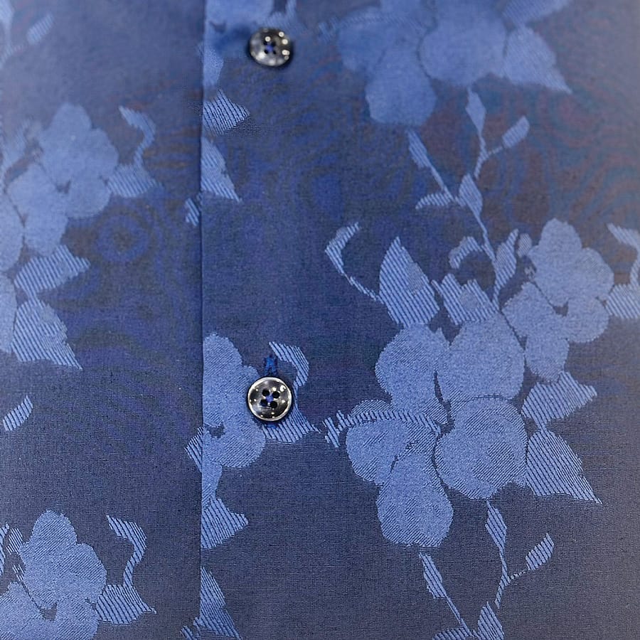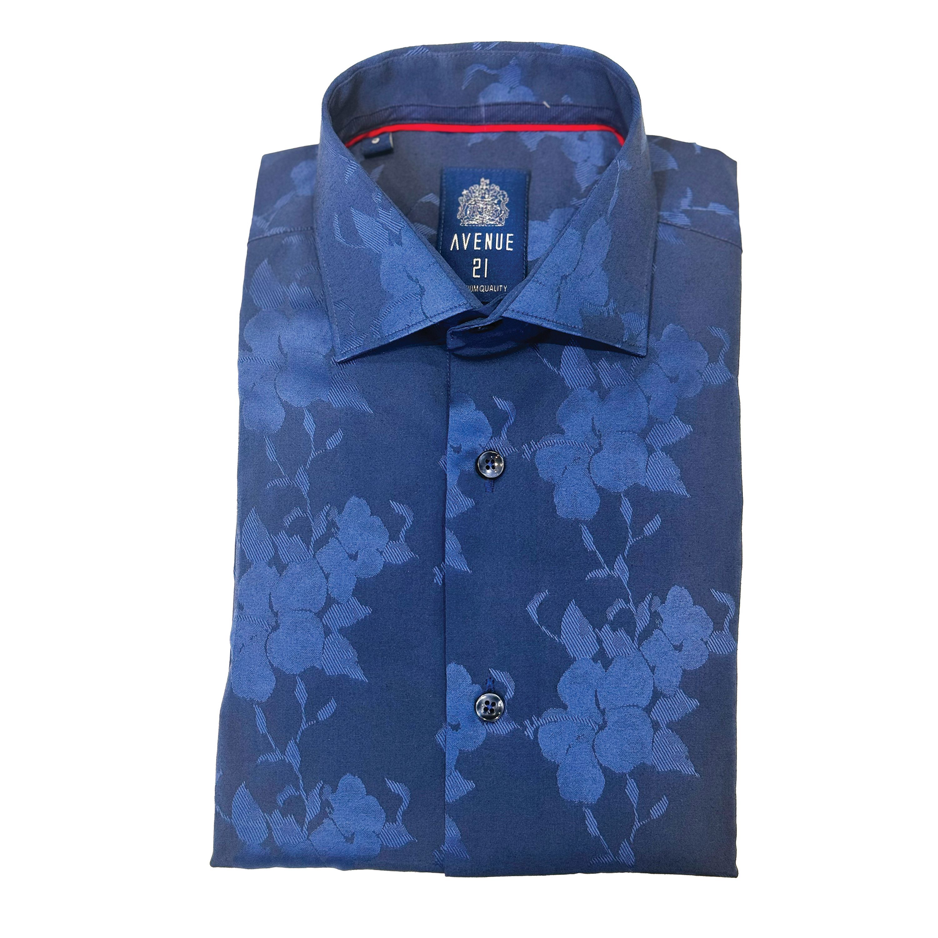 Avenue 21 Jacquard Blue Flower Pattern Button Up